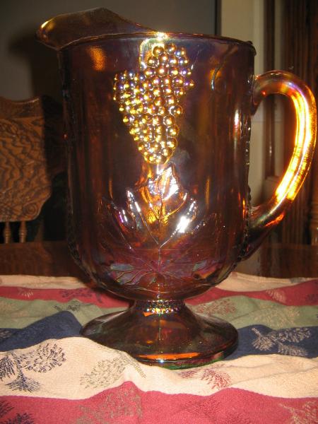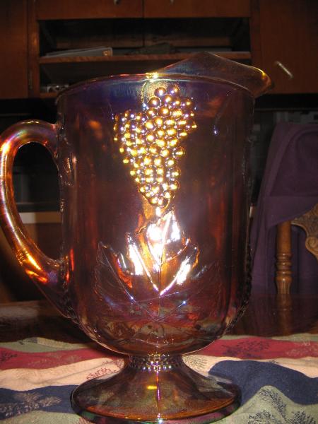 This pitcher is very thick brownish carnival glass