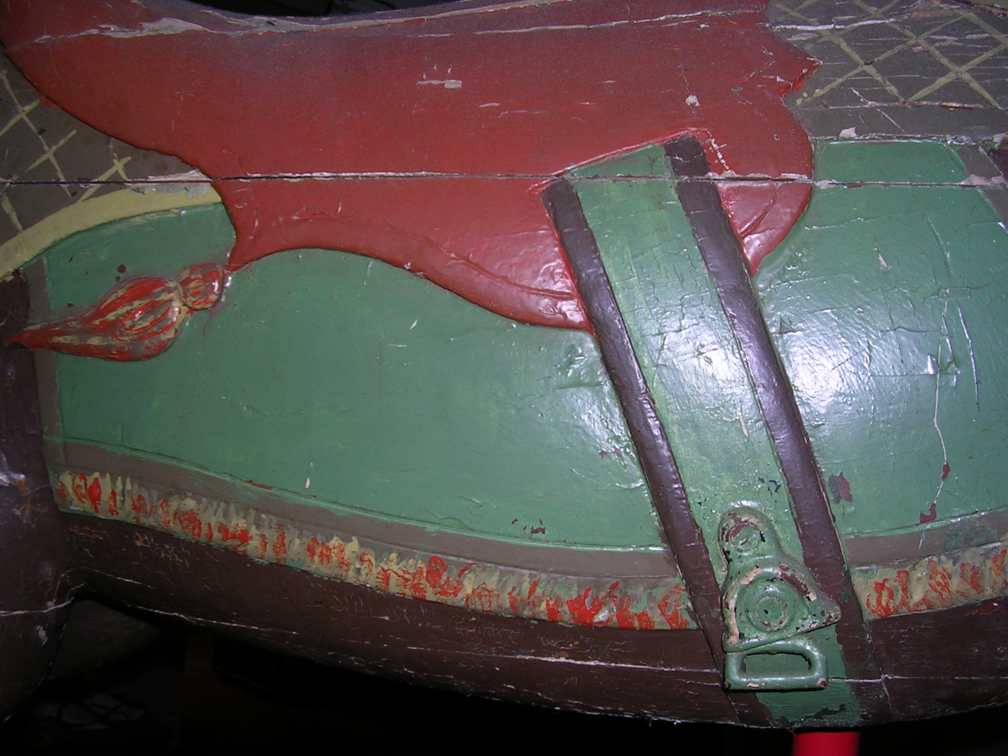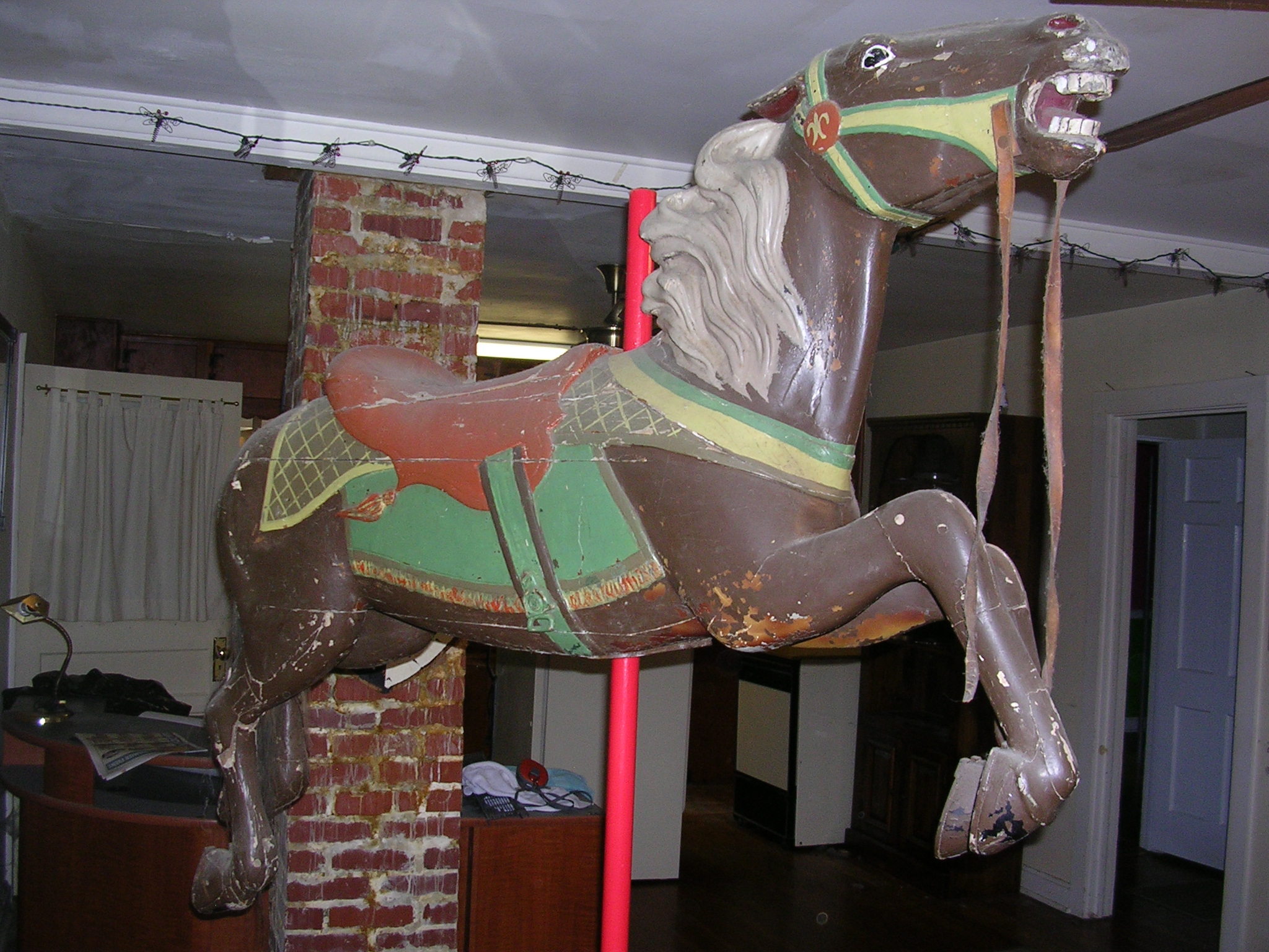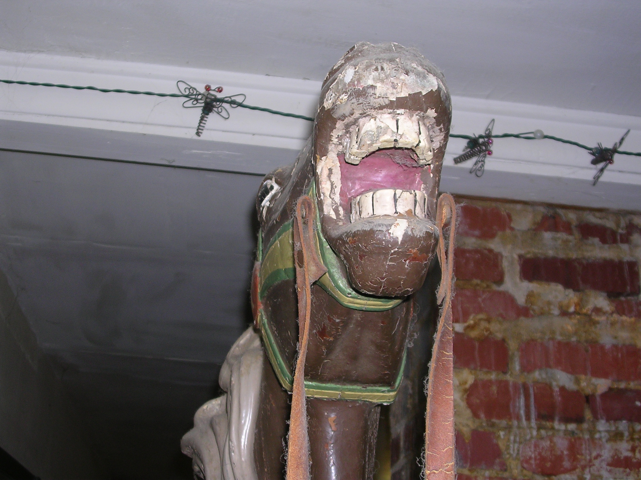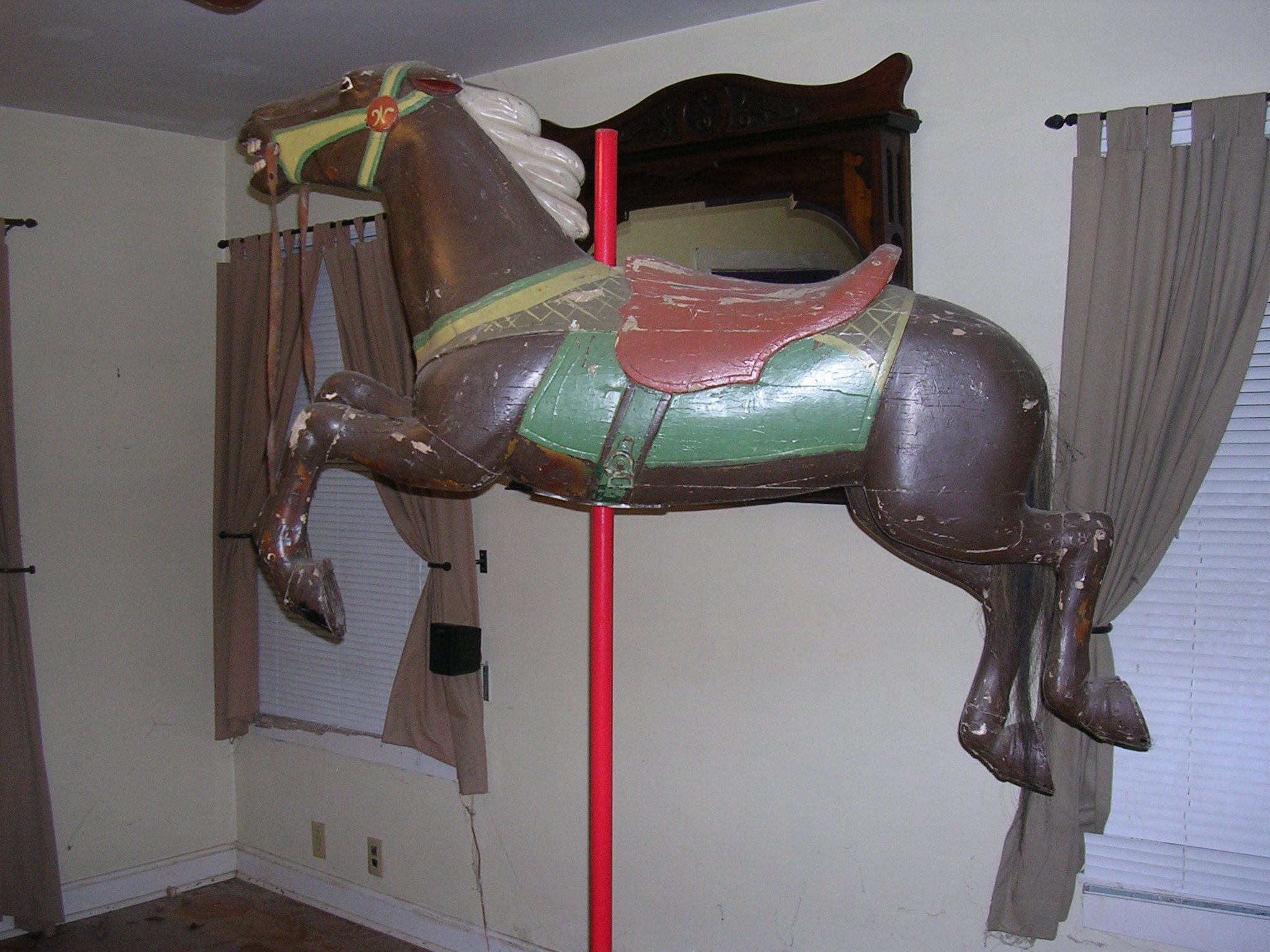 The wooden horses seldom postdate the 1930's, examples like this one could date anywhere from 1900-1930. Damaged examples often sell at auction in the $400-600.00 range
