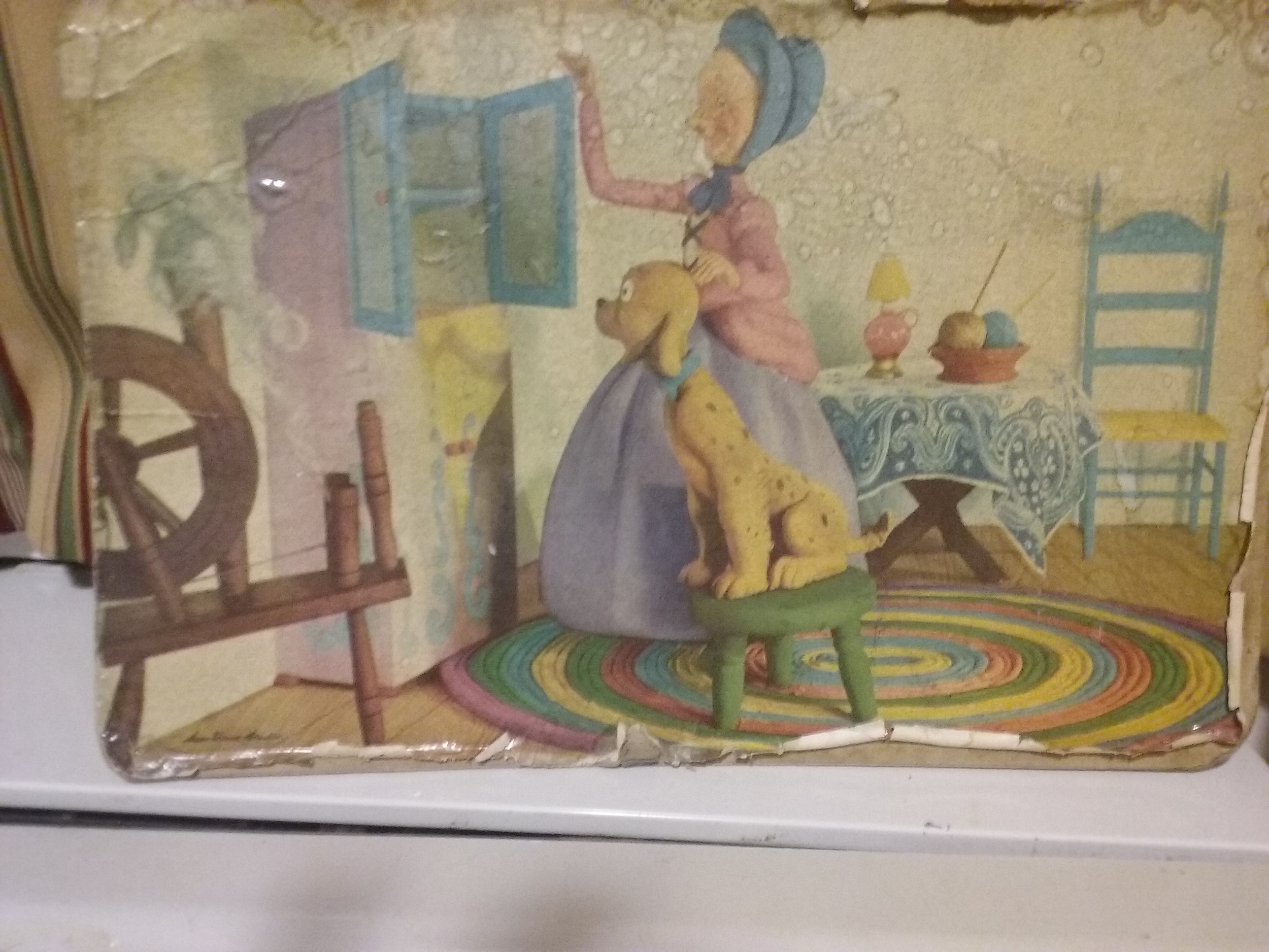 Old Mother Hubbard place mat. Lower left corner says this picture is dated 1945. I took pictures of the front and back.