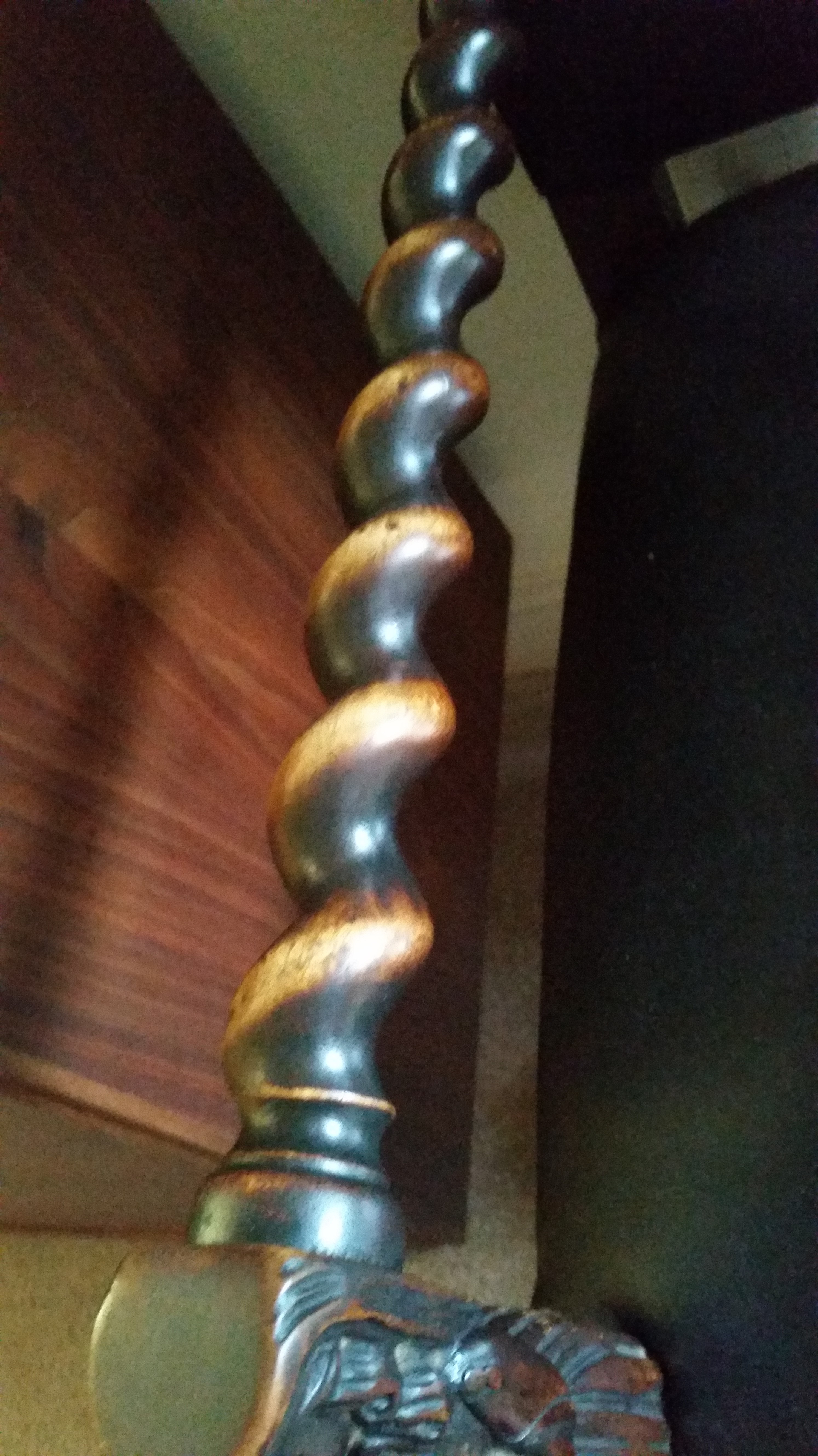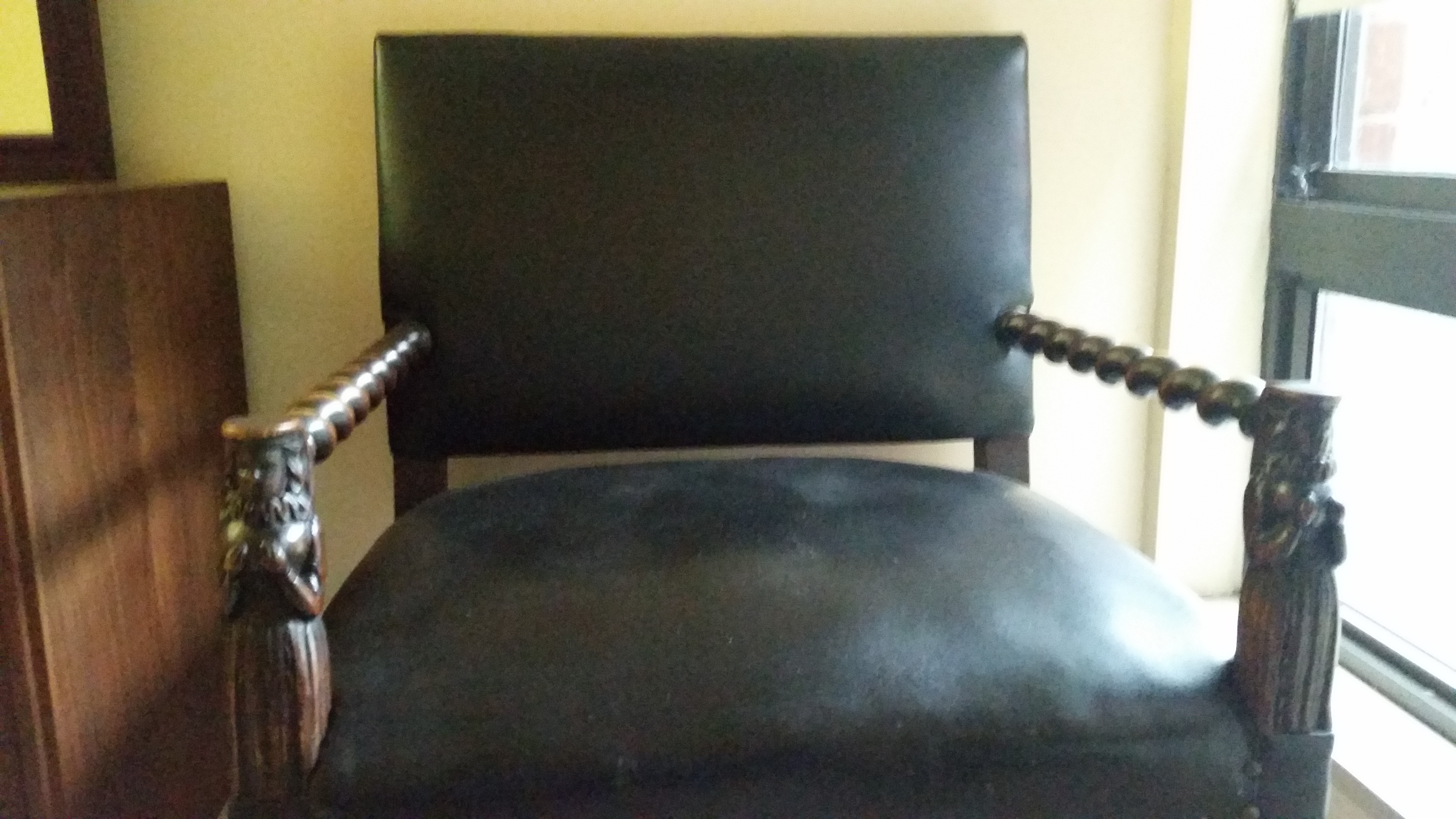 this is a carved chair that i got from my great aunt.  i dont know anything about it.  the arms and legs have a carved rope design, and there are two carved female figures at the end of each arm.  wondering what it is worth.  thanks!!