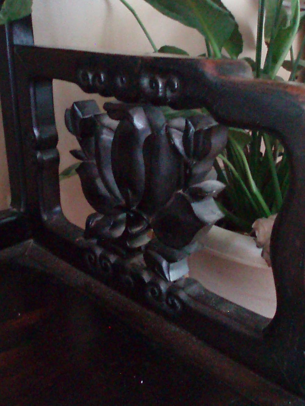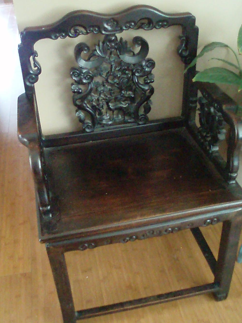 Bought in Monterey Ca. at an asian art auction. hard wood chinese chair I believe is mahogany