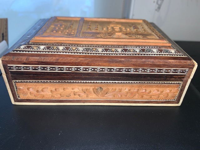 Carved box with inlays, from India.