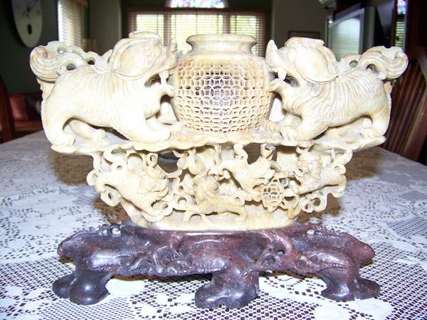 Re: Carved Soapstone Fu Dogs and Bowl on Stand