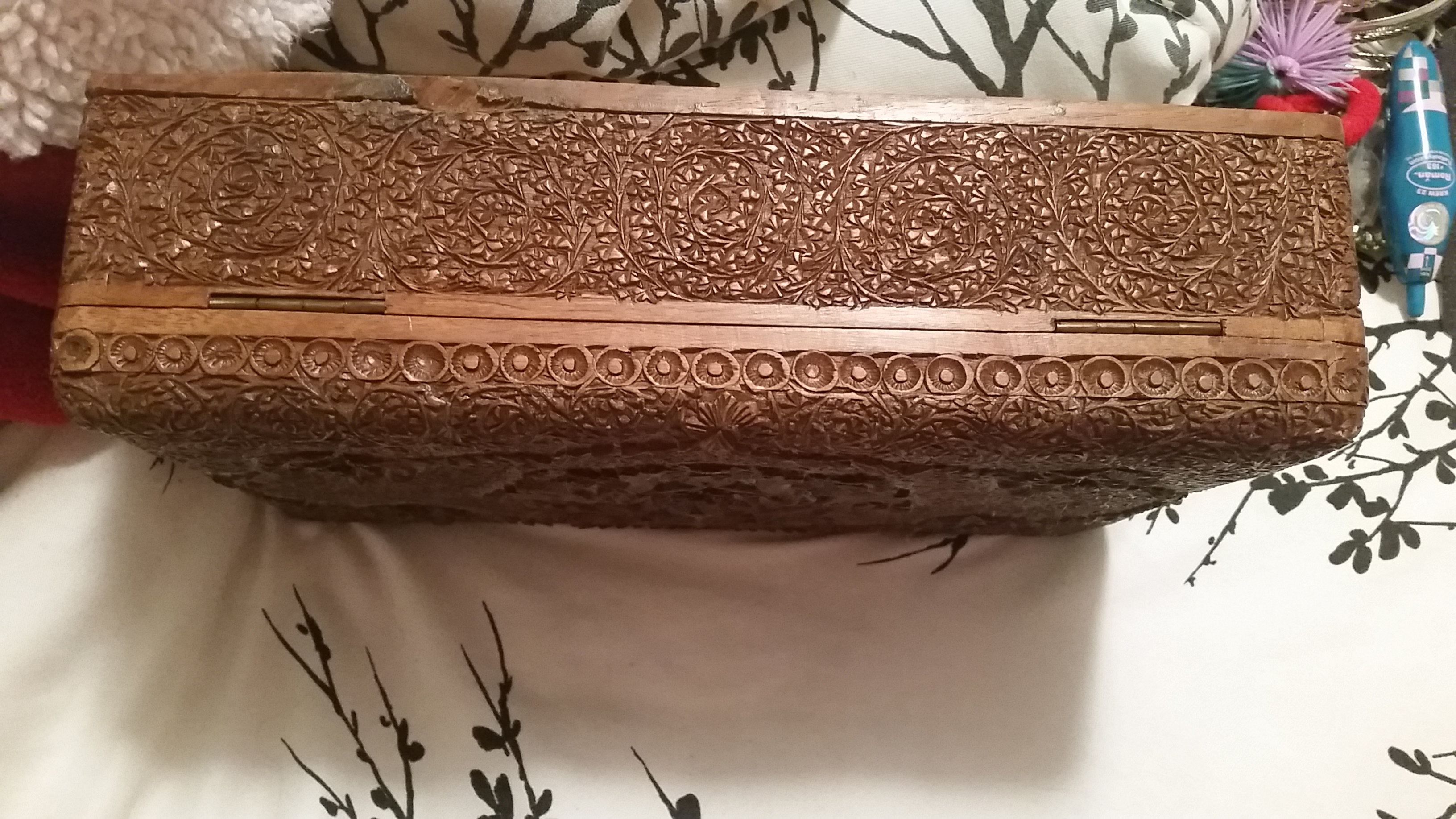 My great grandmother received this jewelry box from her son, back in the late 50's-early 60's. He was a merchant sailor. I have always been told it is made of teak wood. And that's all I know, I would love to learn about it and what it's value maybe.