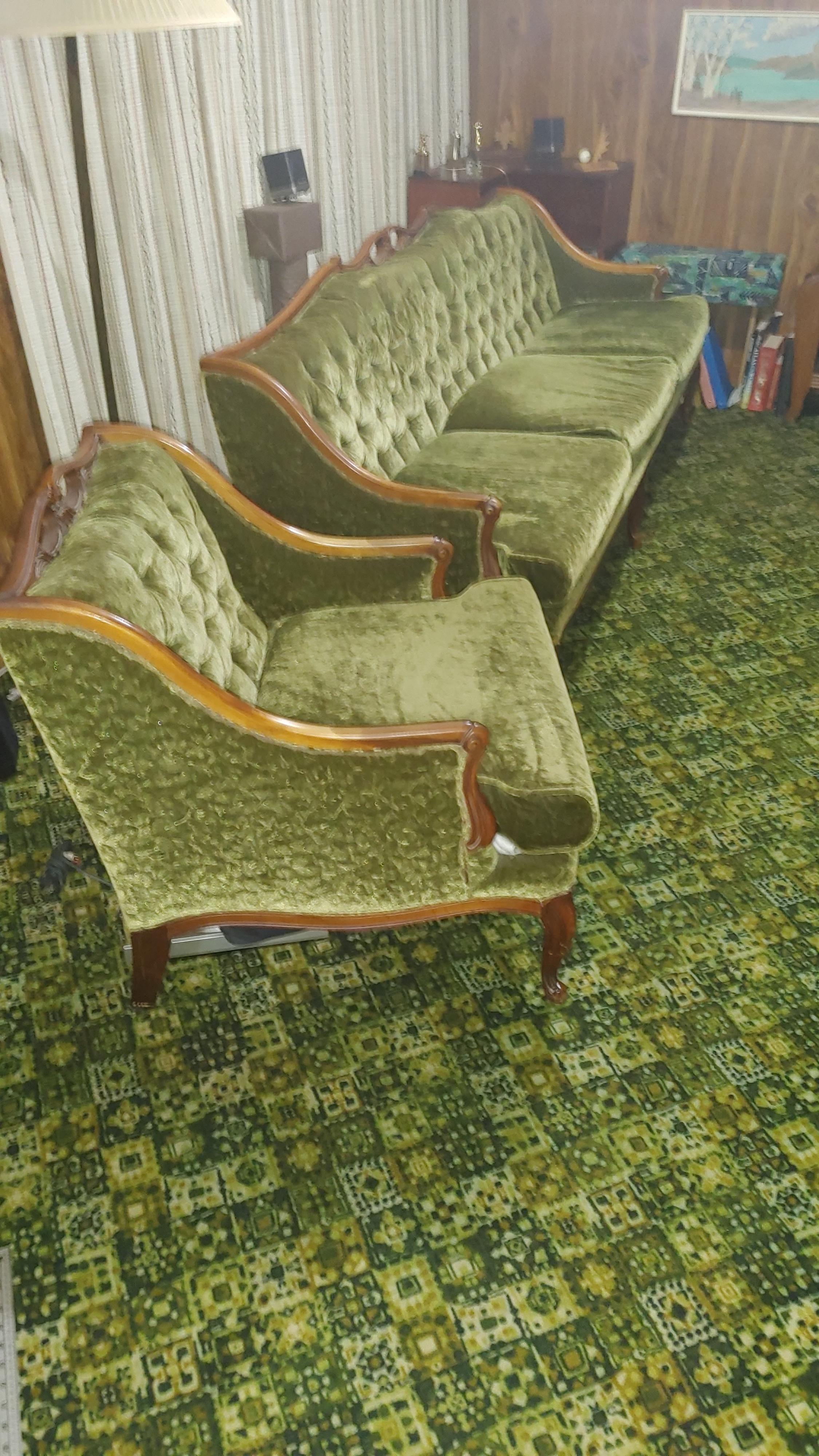 Green couch and chair set.