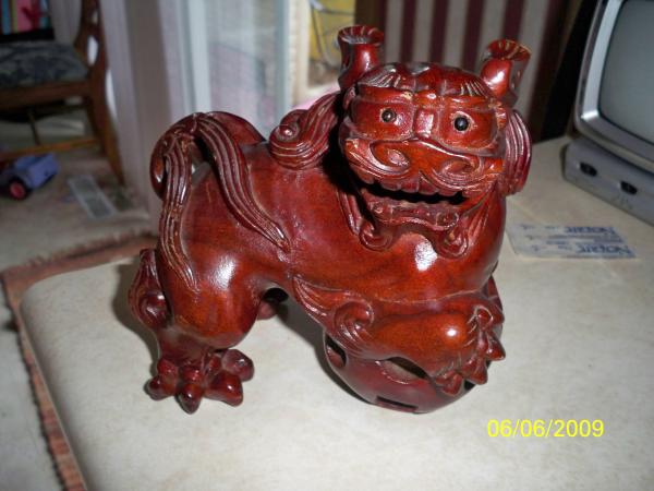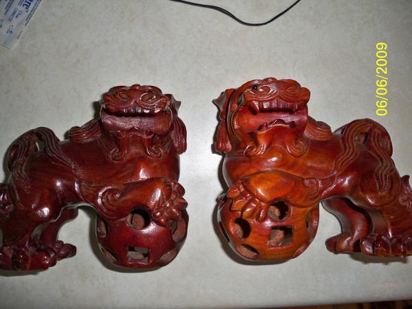 I do not know two much about these items. Both lions have a wood ball carved inside the ball they have their front paws rested on. There is a marking of what appears to be a 2 or Z on the bottom of one of them. Please help me to get some history on these. I am collector and have never seen anything like these before.