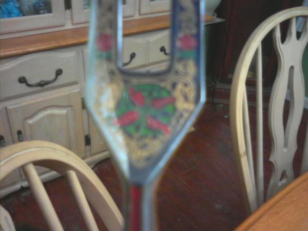 Carved Handles of ivory with soligen and animals stamped in gold on knife