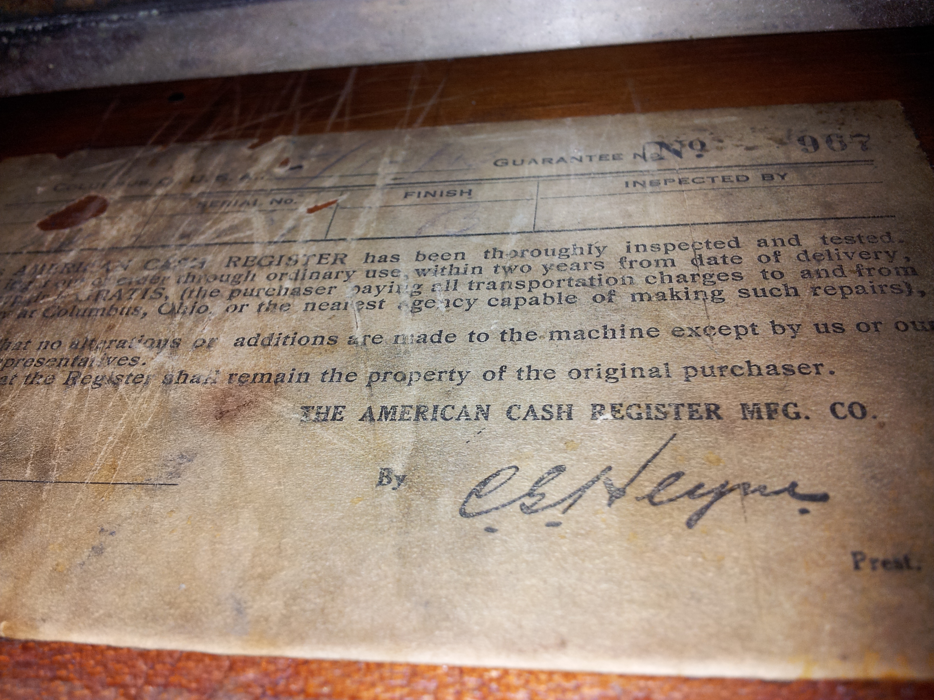 All we know is what you see. This has been in the same family for about 40 years. It's an American Cash Register Mfg Co, Col, O (stated on the back). Model 22 SN 55409, which based . Could we get a ballpark estimate of value, please?? Thank you so much!