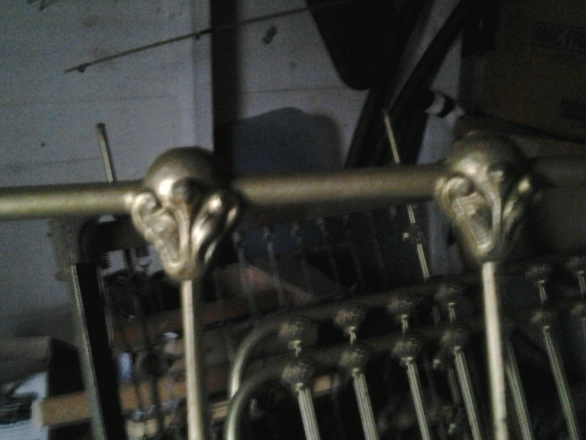 Cast iron crib found in a clean out. Has floral like embellishments on rails. appears to have original gold paint.