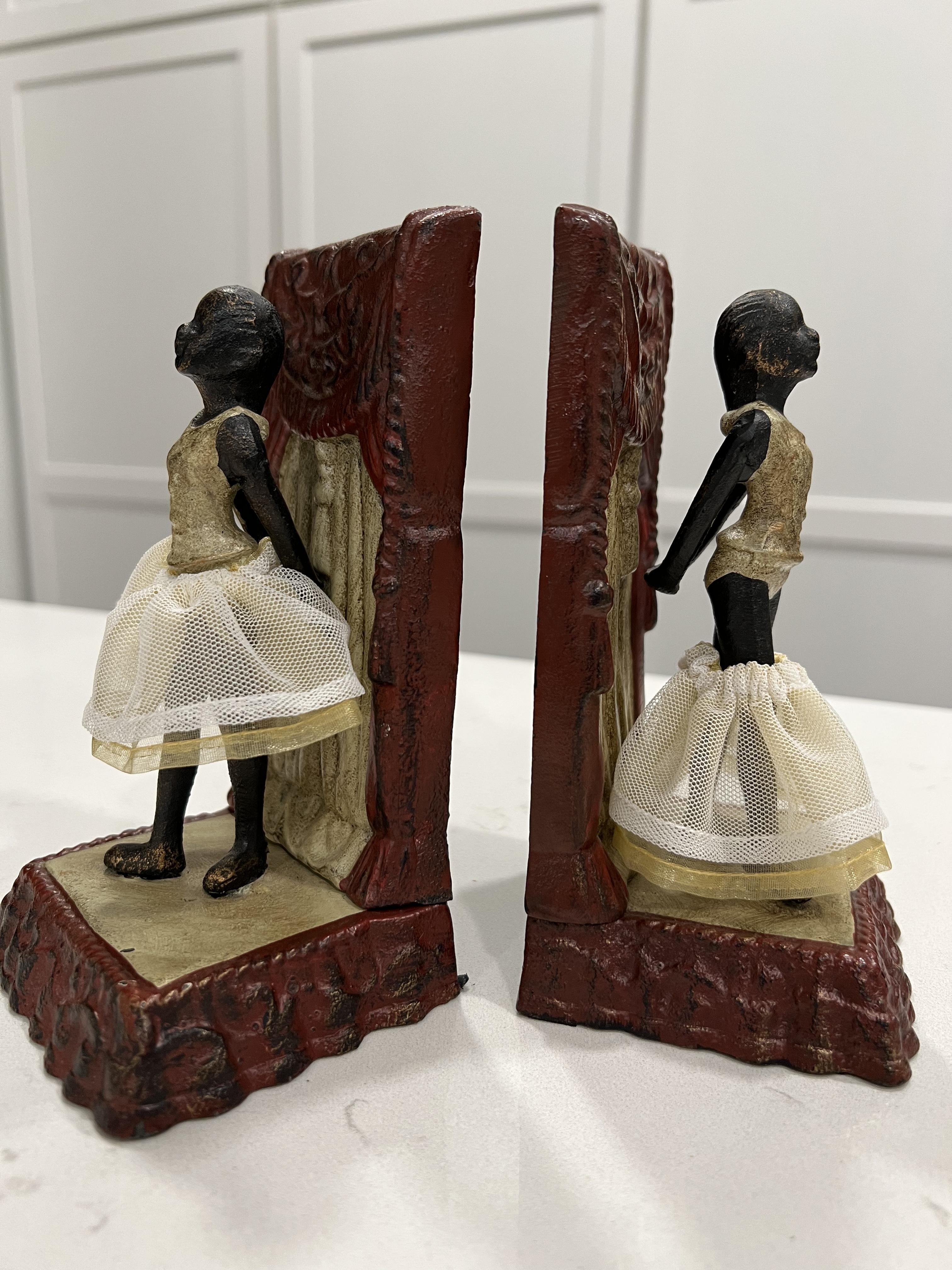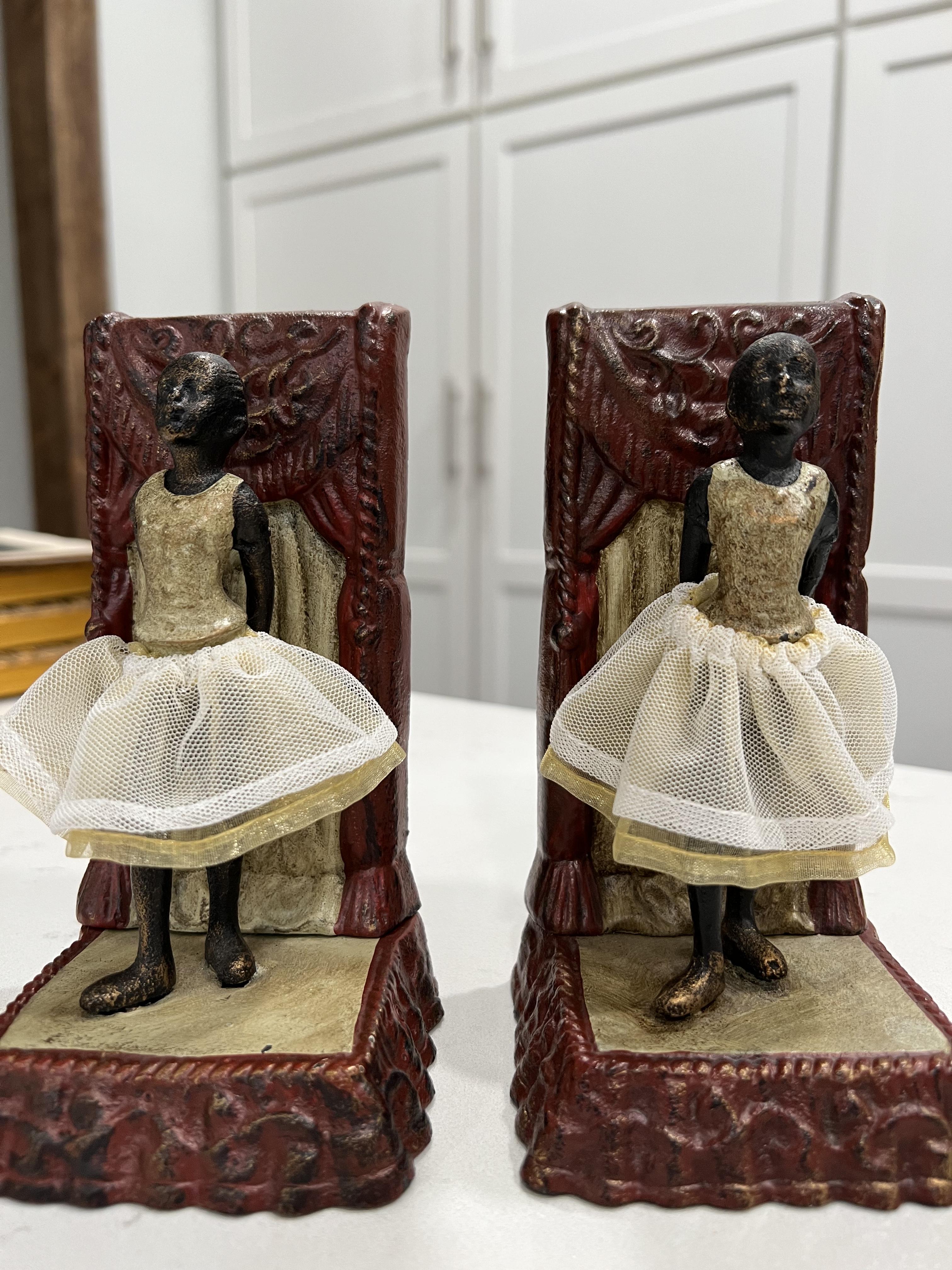 I haven’t been able to find a lot of information on these but I believe they are Degas Ballerina Bookends. They are cast iron and have fabric skirts. If anyone has information on these and what they might be worth, I really would appreciate it. Thanks!