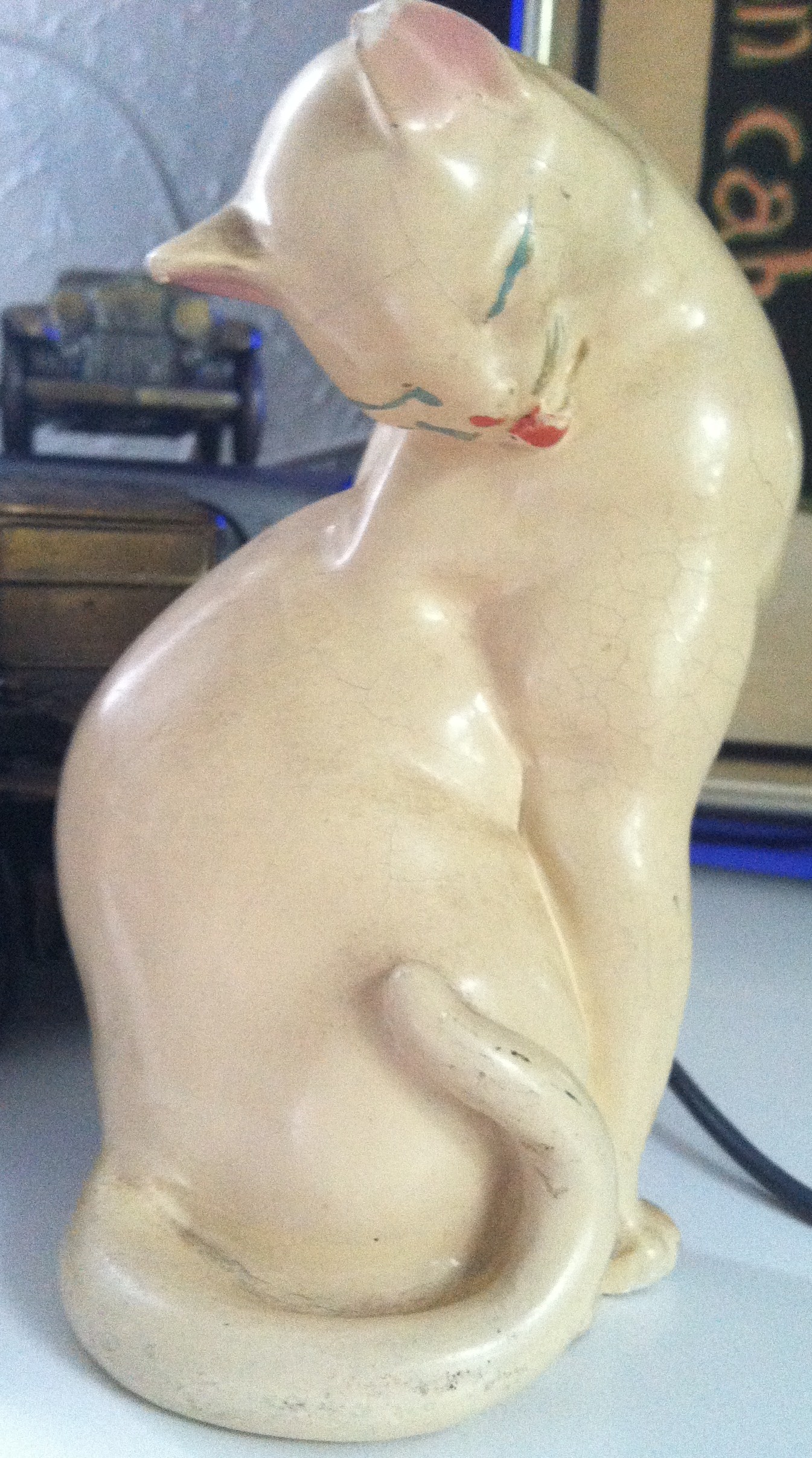 I bought it for $1 at an antique sale. I have no idea what it is made out of, I have no idea how old it is, and it has no artist markings.