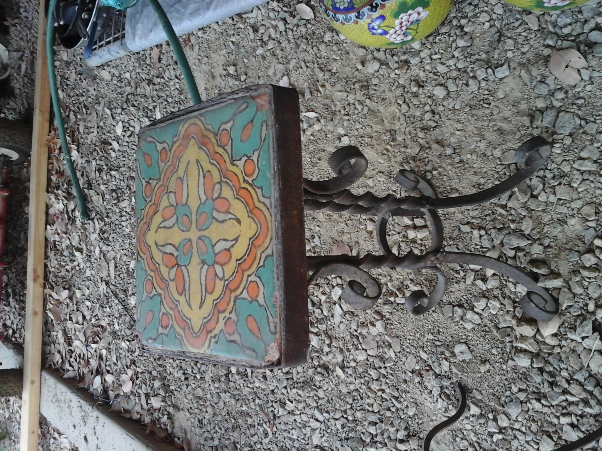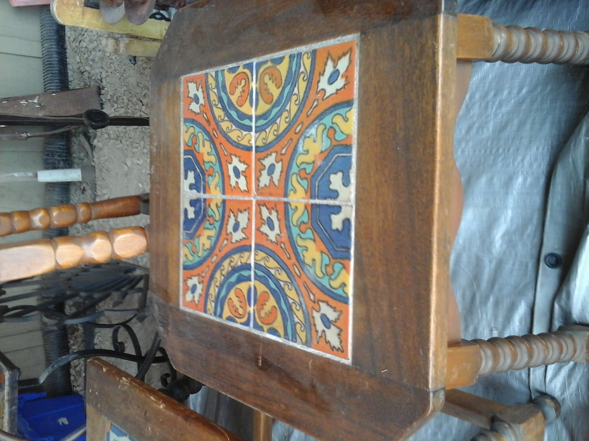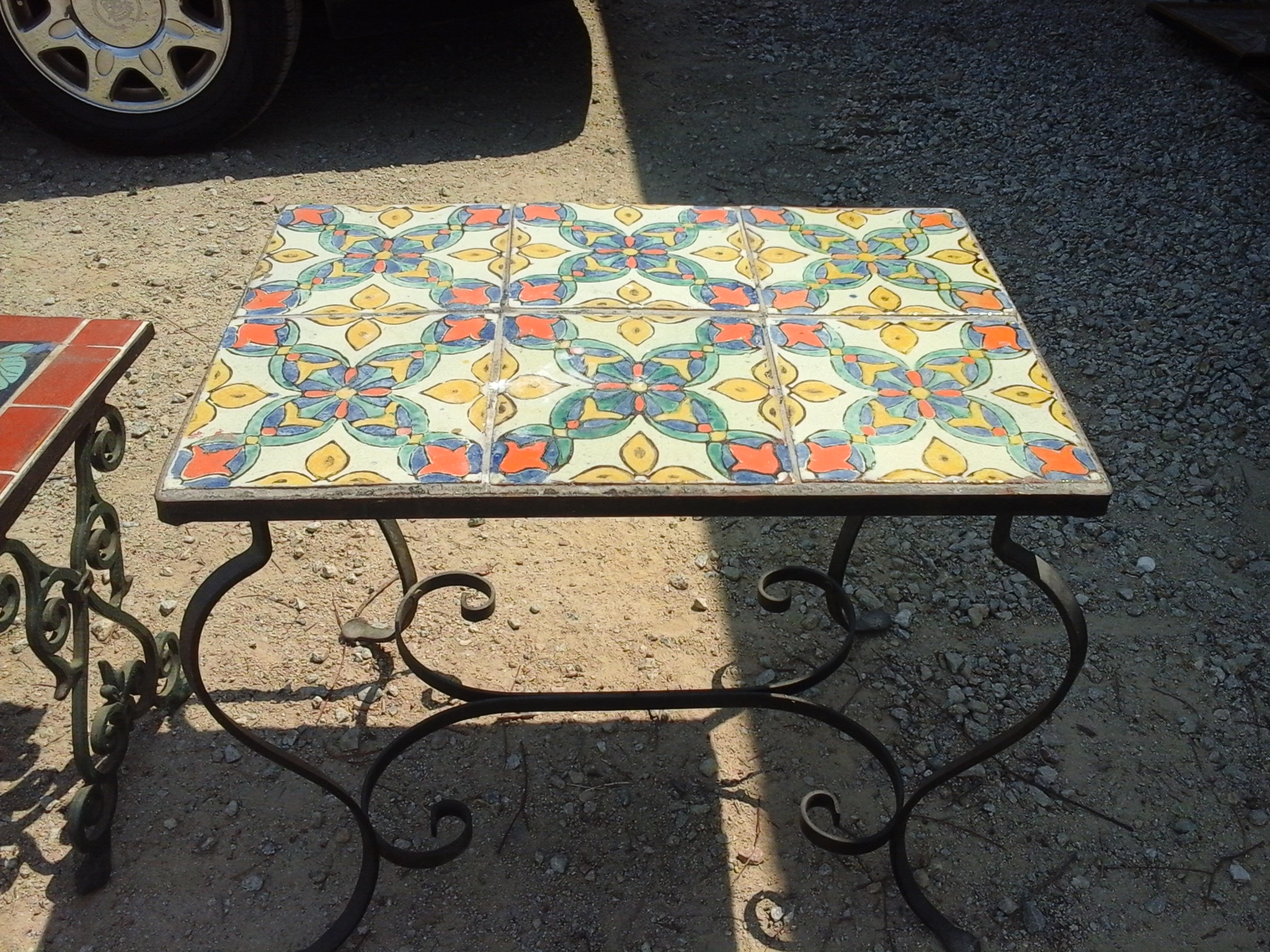 Wooden and wrought iron table with Catalina tiles