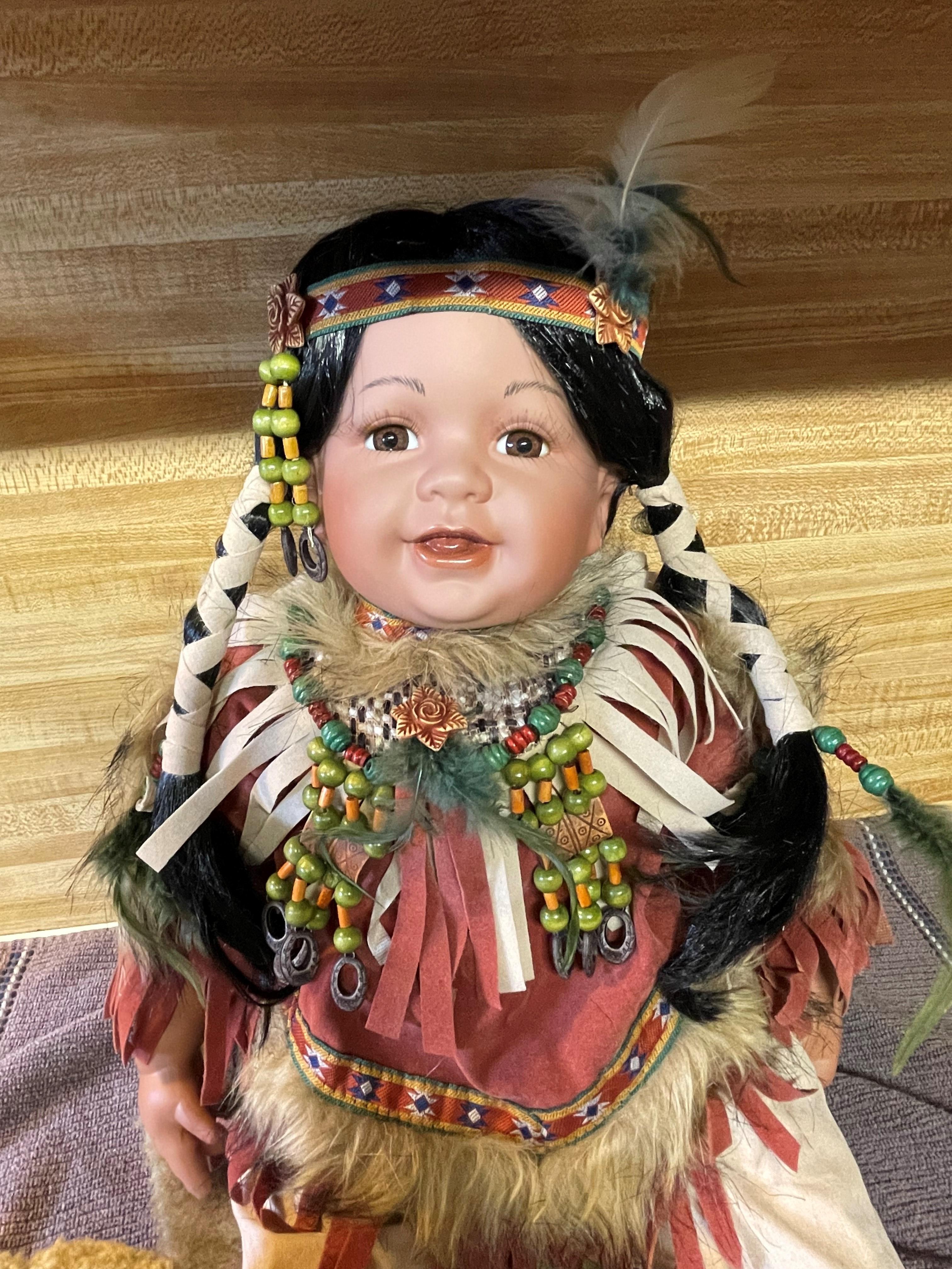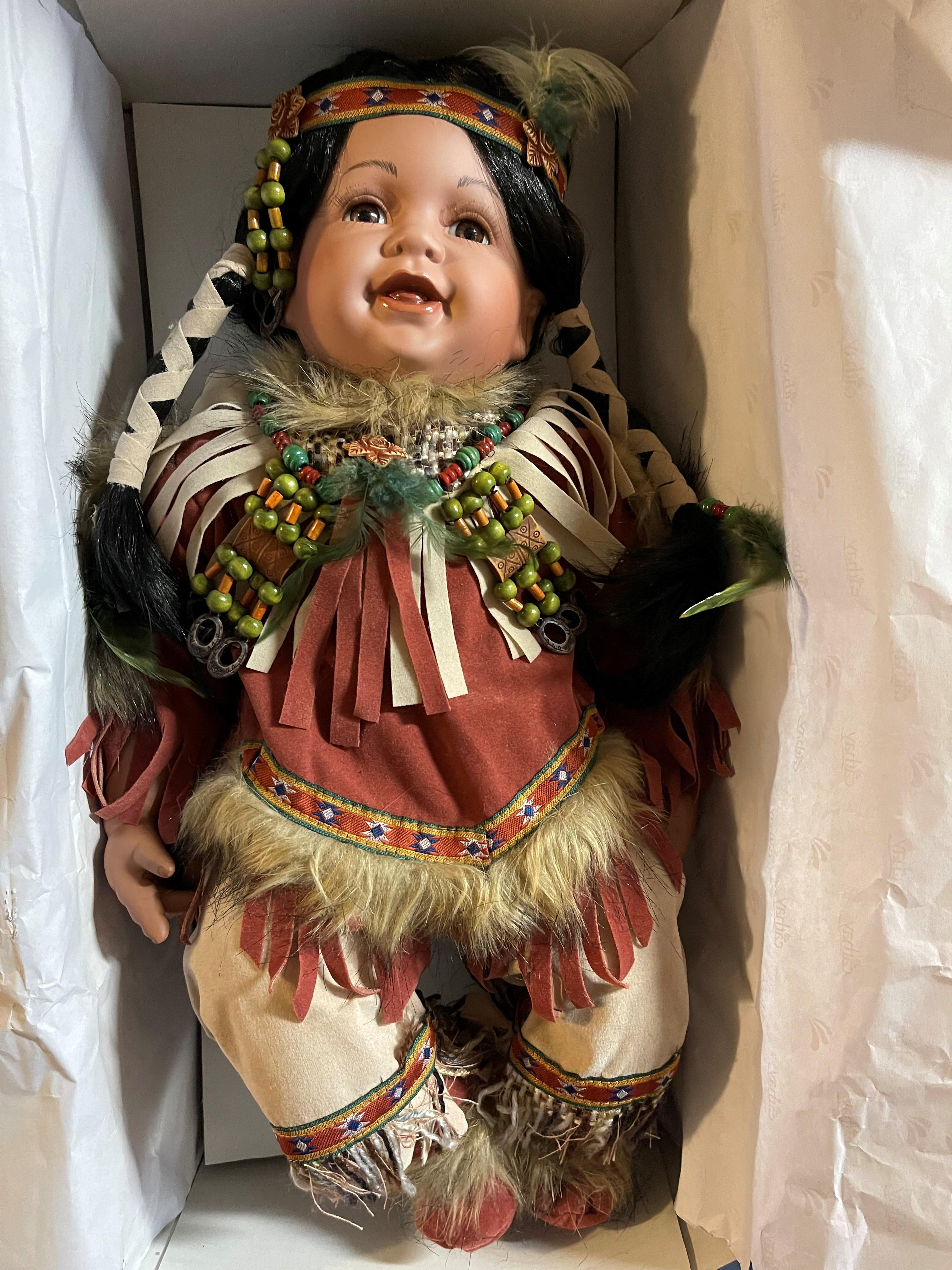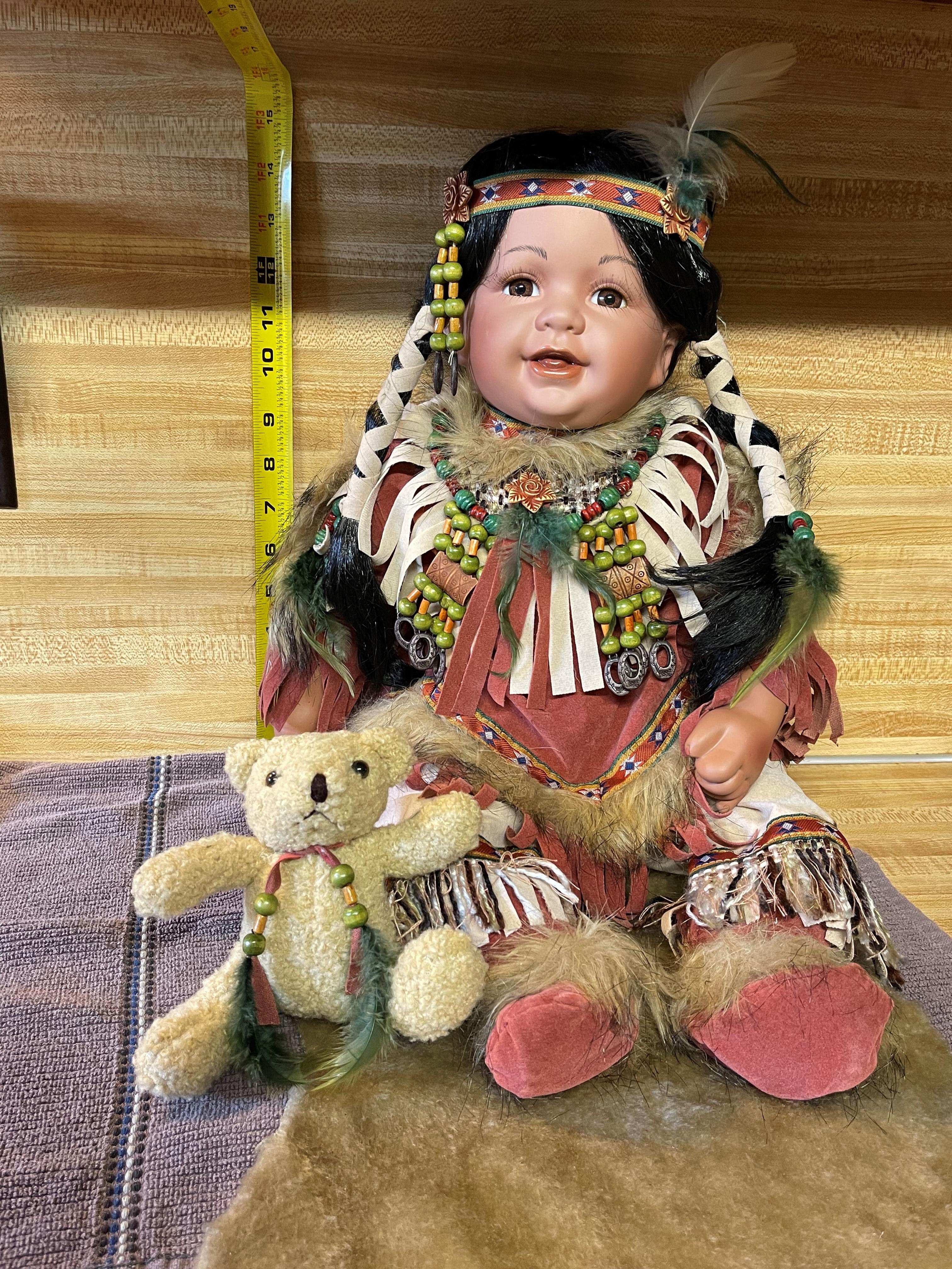 Limited Edition Cathay Collection Porcelain "Gwendolyn" Doll 141 of 5000 With Certificate of Authenticity. Mint condition in box, only been out of box for pictures to list for sale. Native doll, with rug and teddy bear. Approximately 19 inches long, 15 inches high in a sitting position.