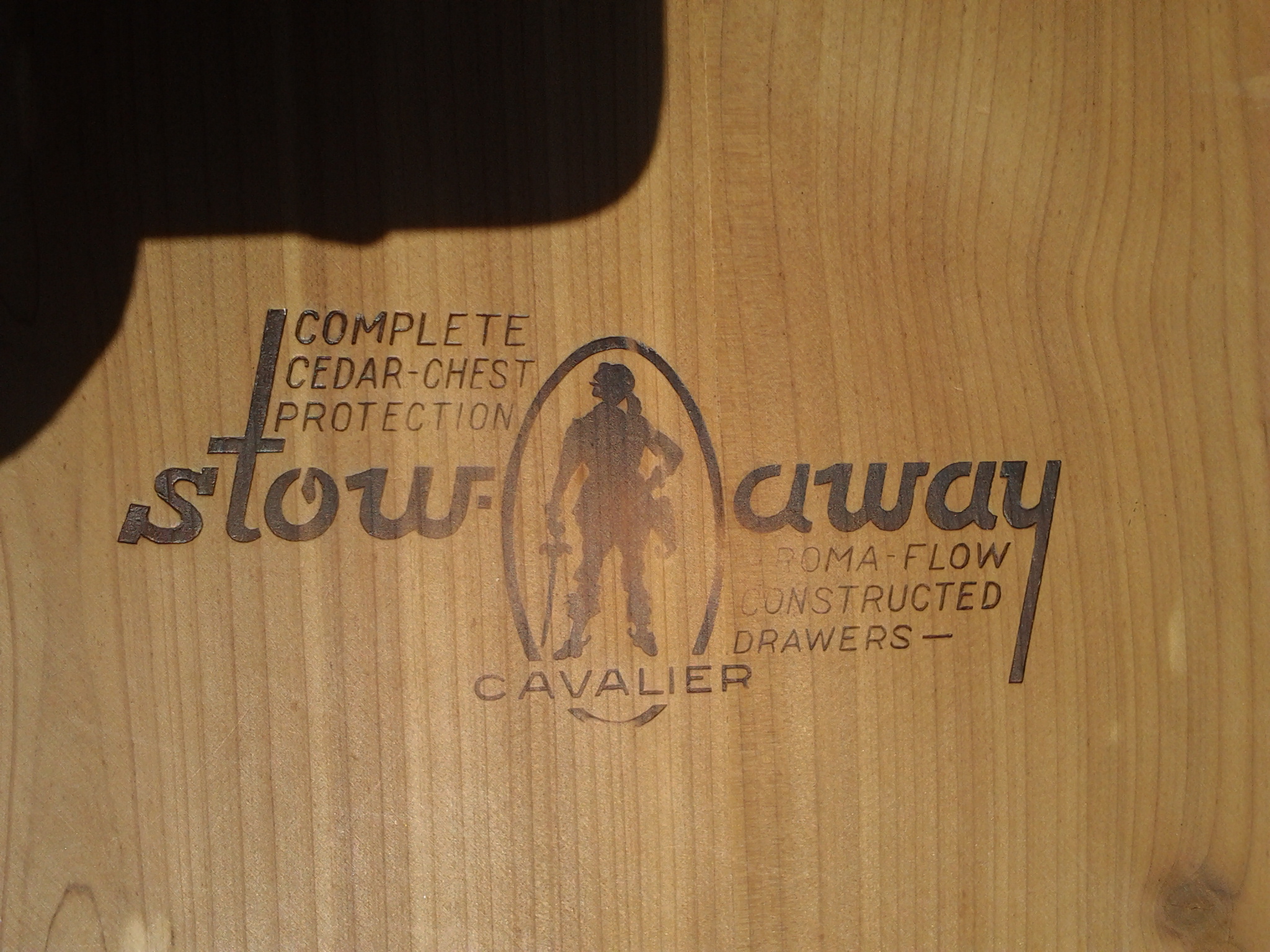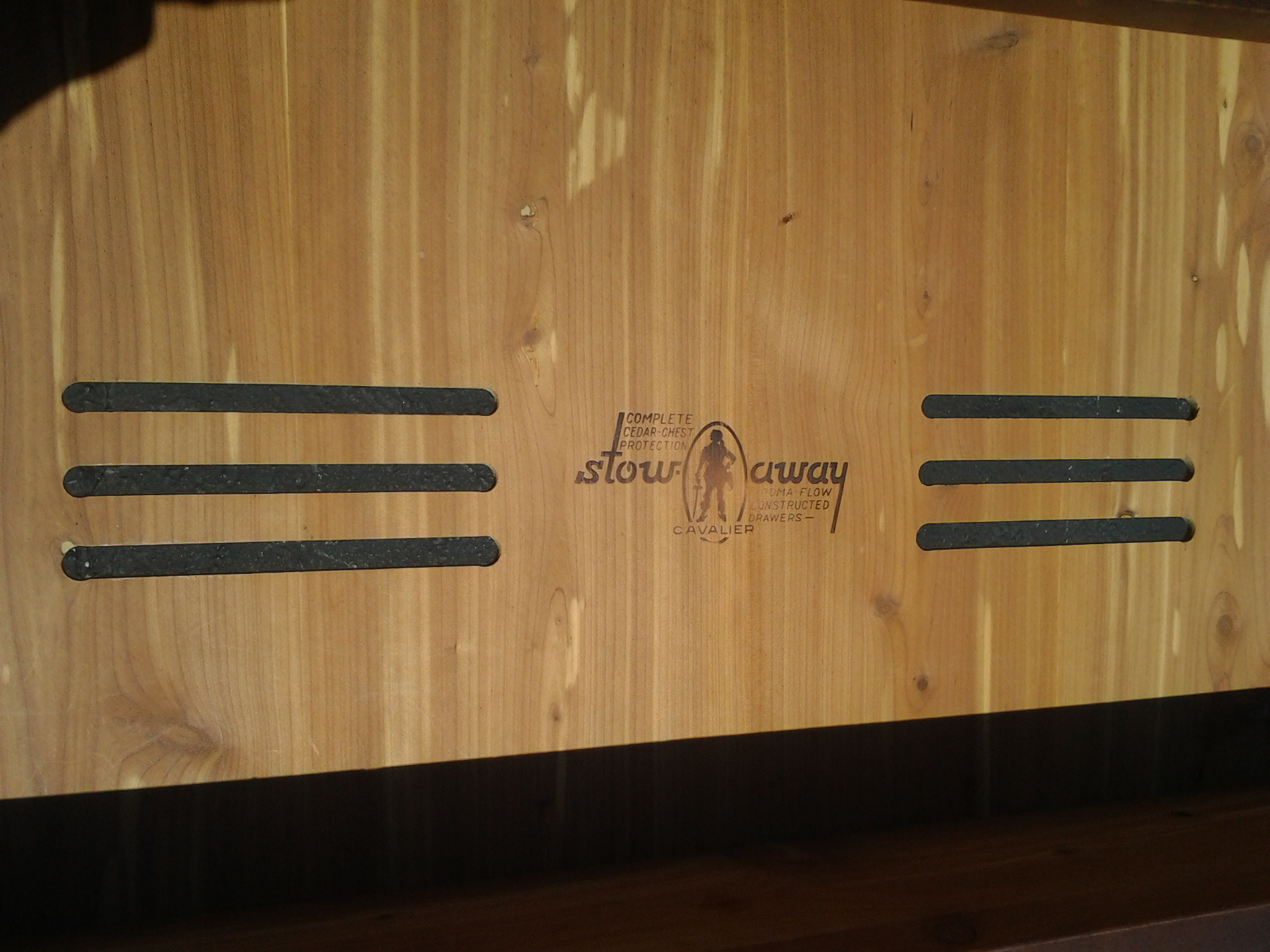 Cavalier Stow-Away Cedar Chest with aroma-flow constructed drawers. In fair/good condition.