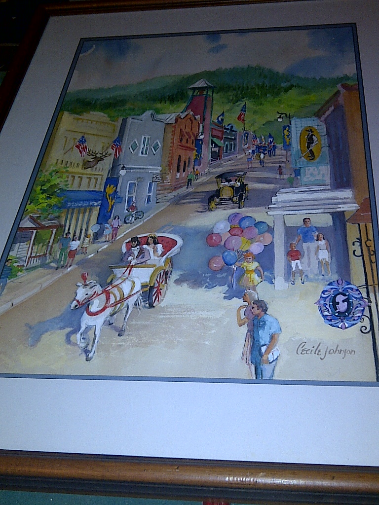 I beleive the painting depicts main street, park city Utah but am uncertain.