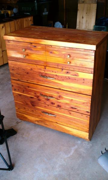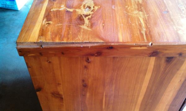 Cedar Dresser, has small piece of wood missing (see pictures)