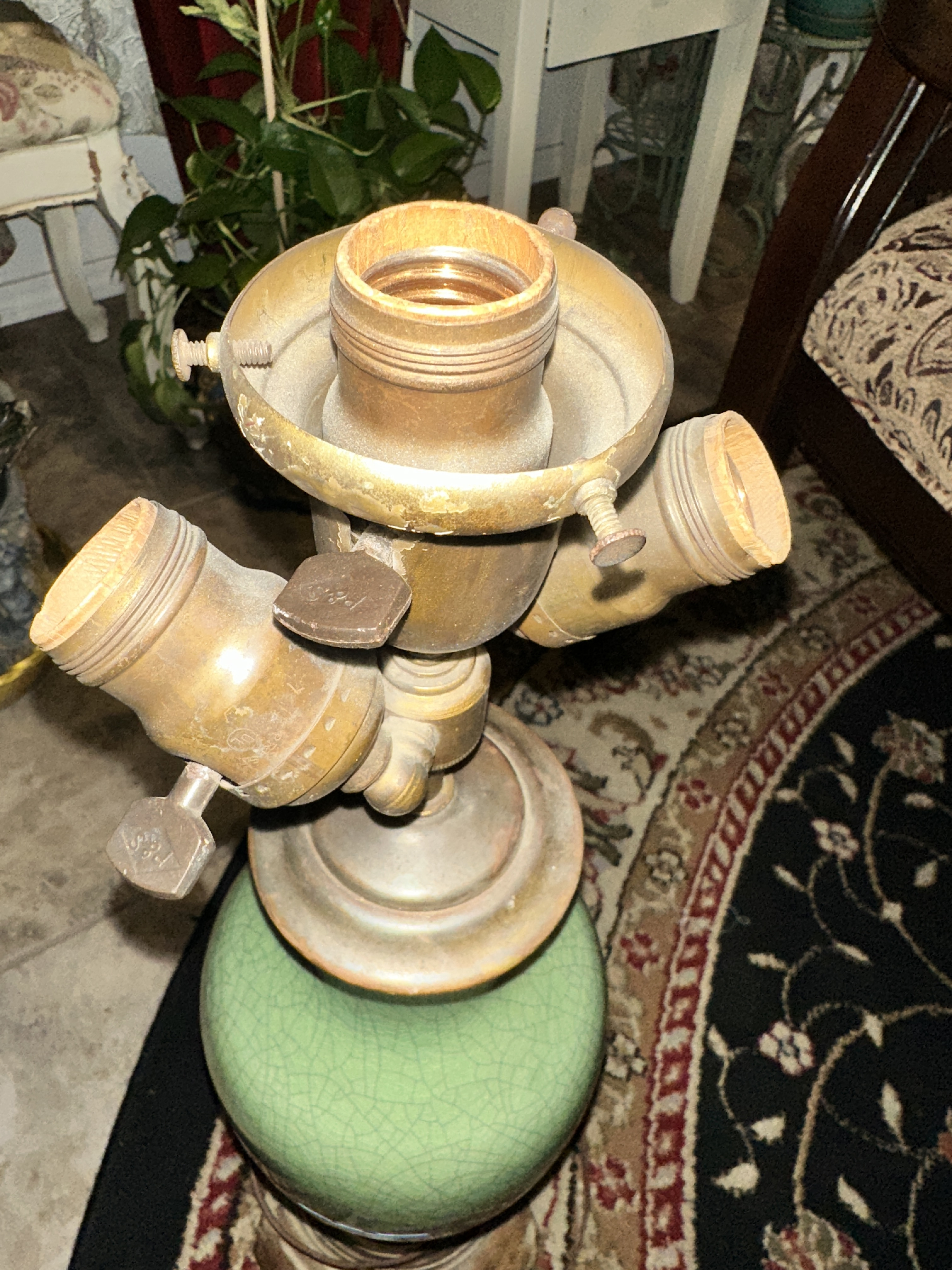 Celadon Glazed Porcelain Vase Lamp with Brass 3 Light Cluster Fixture
