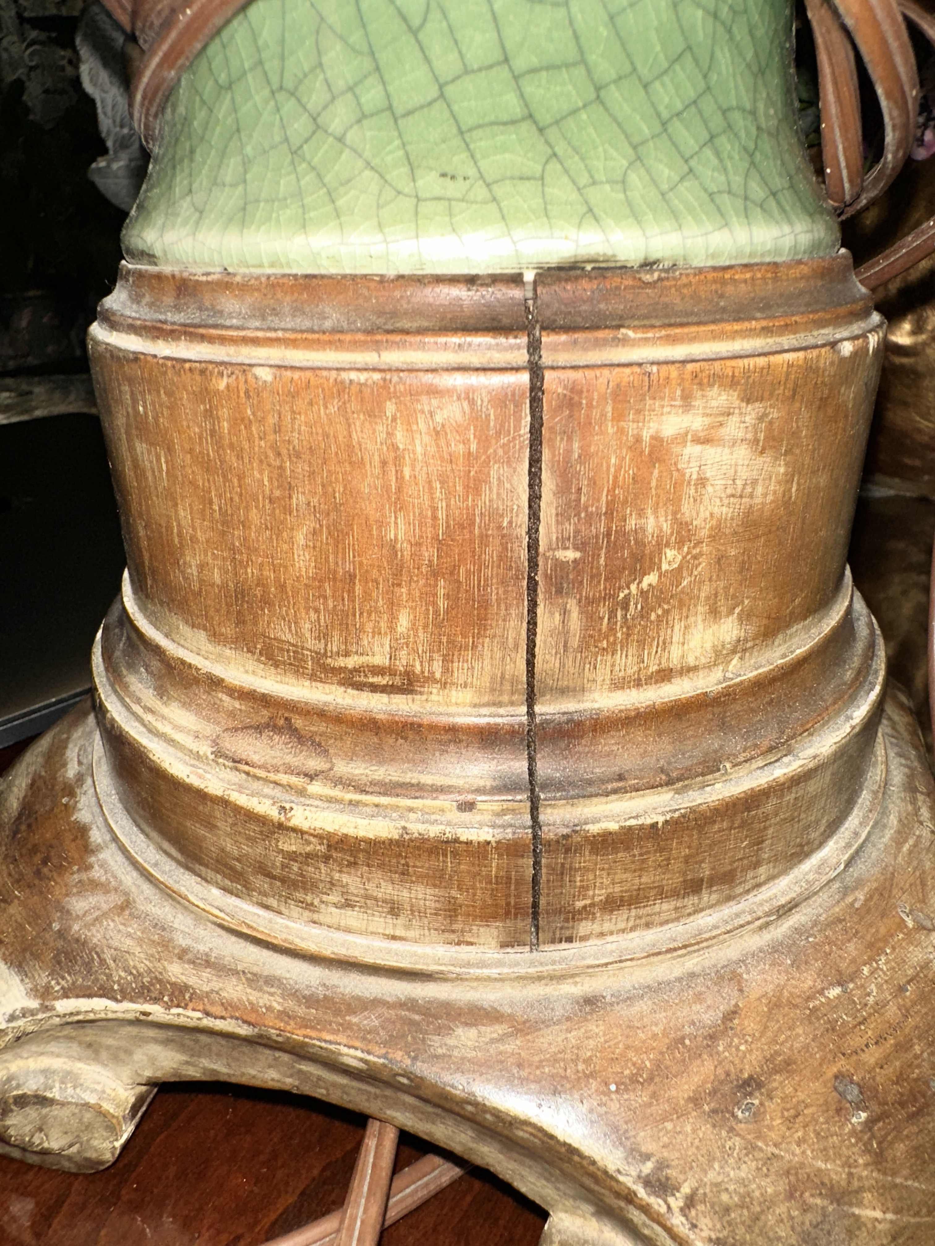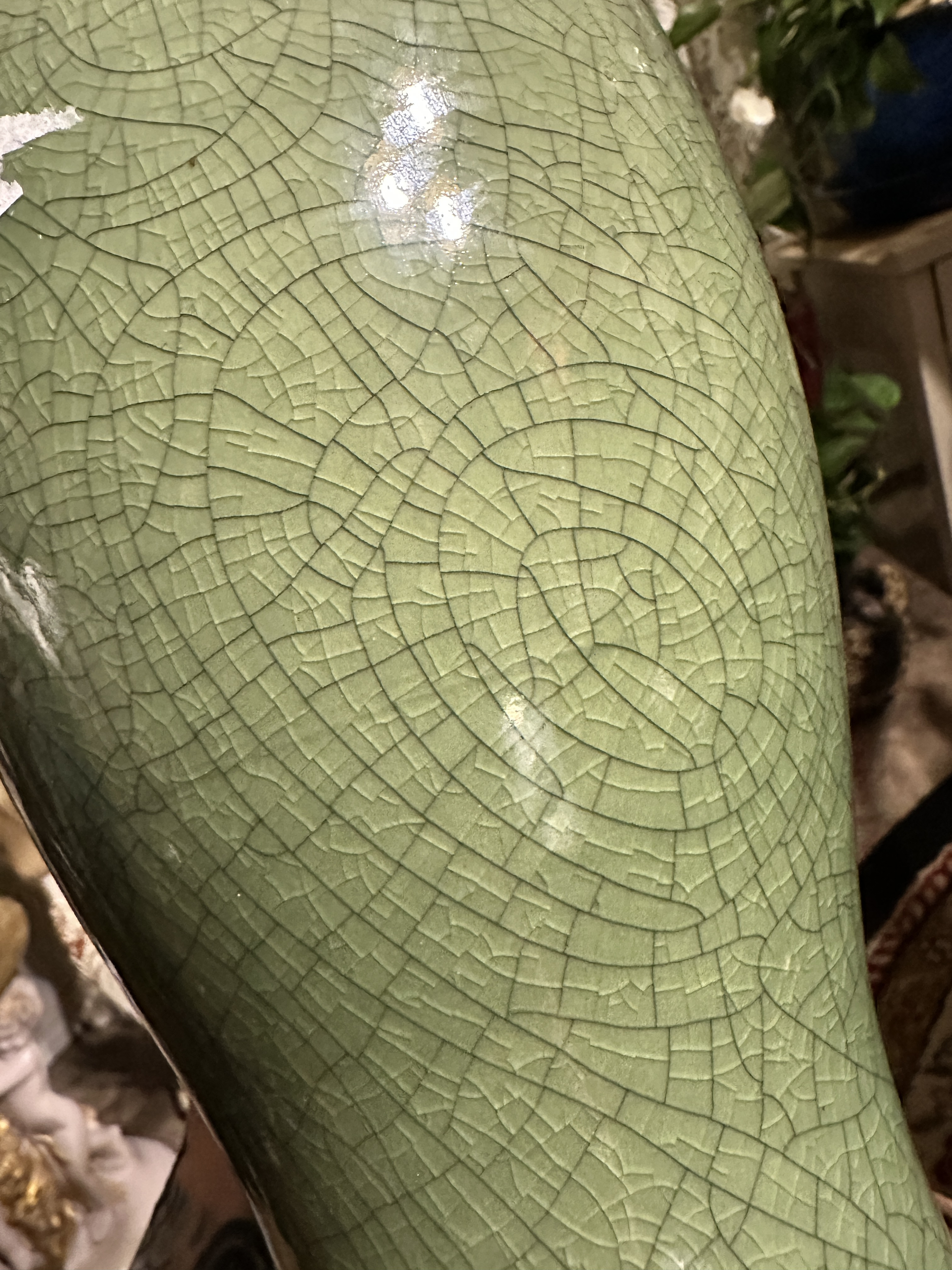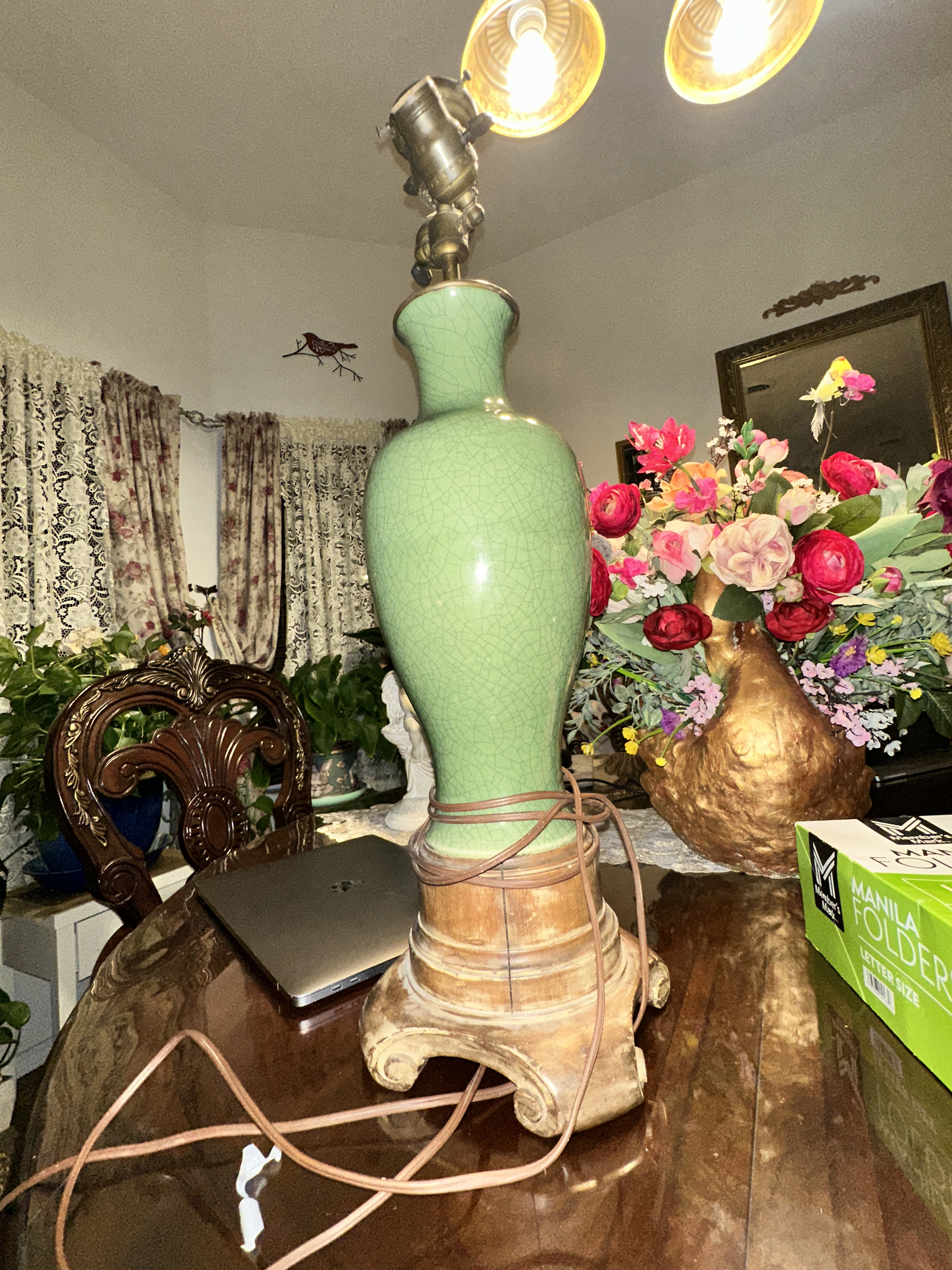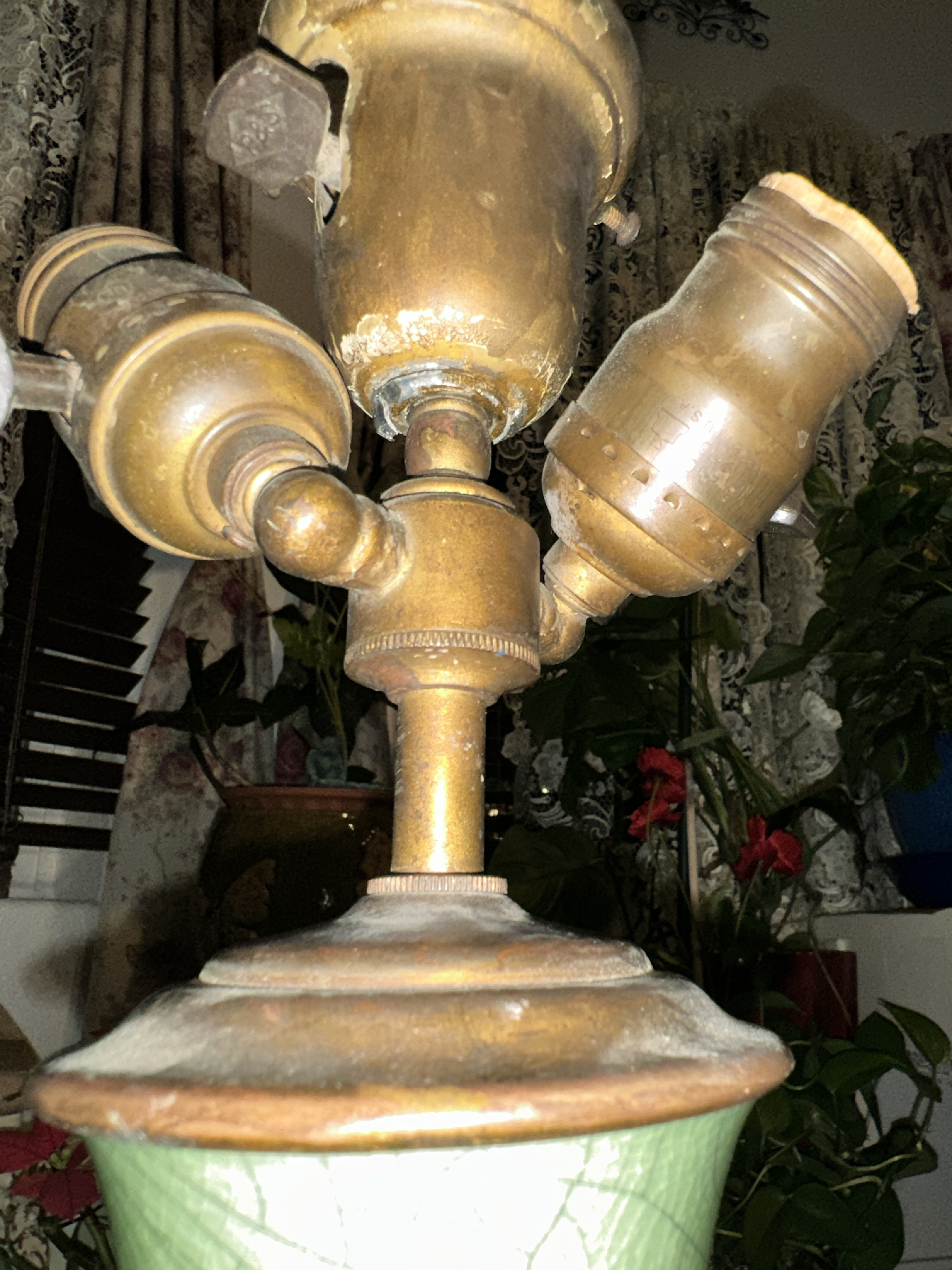 AI Appraisal: Celadon Glazed Porcelain Vase Lamp with Brass 3...