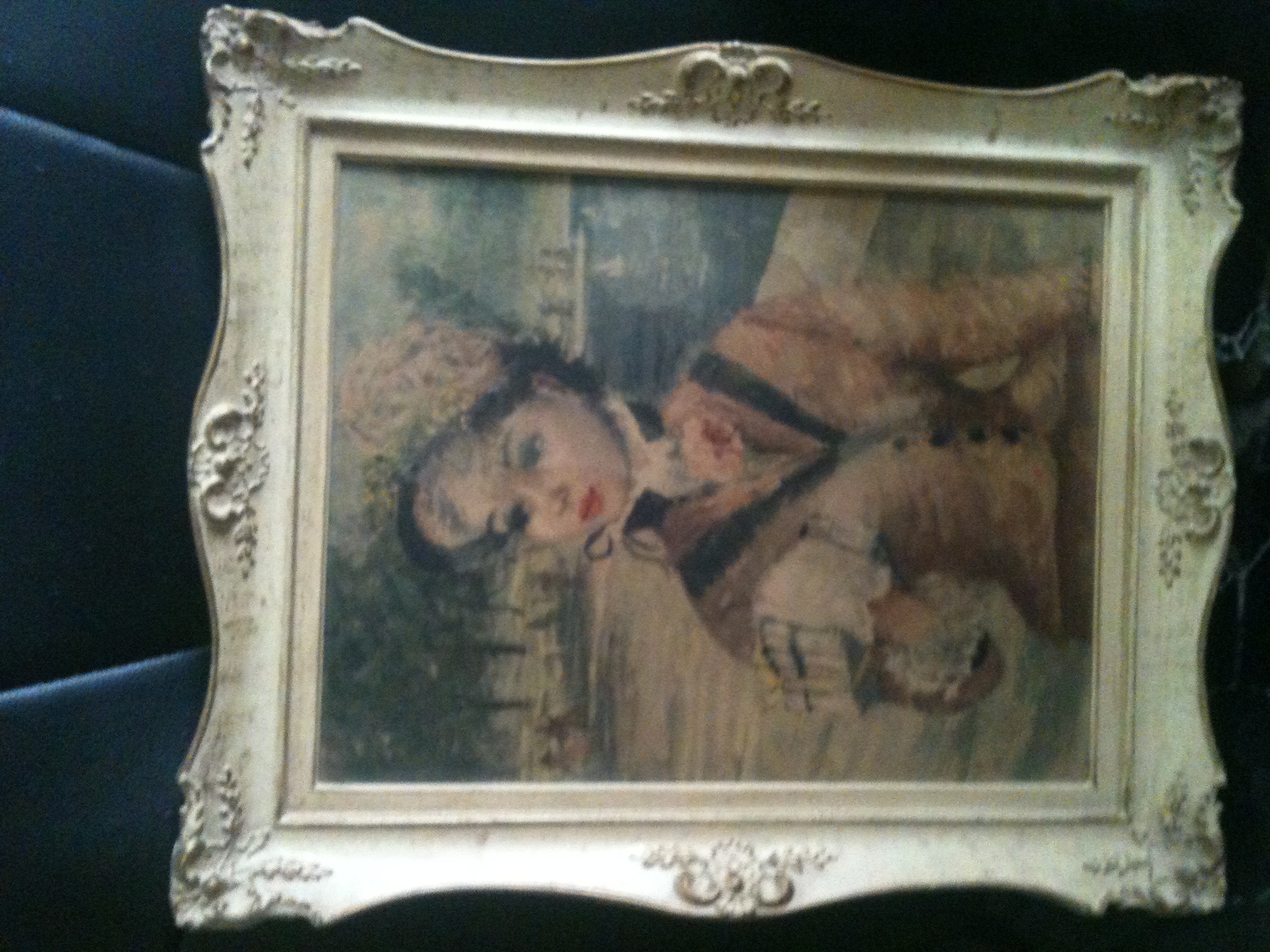 In Central Park V.2313-771 painting with Huldah signature on the bottom right hand side. With a stamp of Windsor Mode styled by Illinois MLDG CO. Chicago 8 Ill. Made in USA.