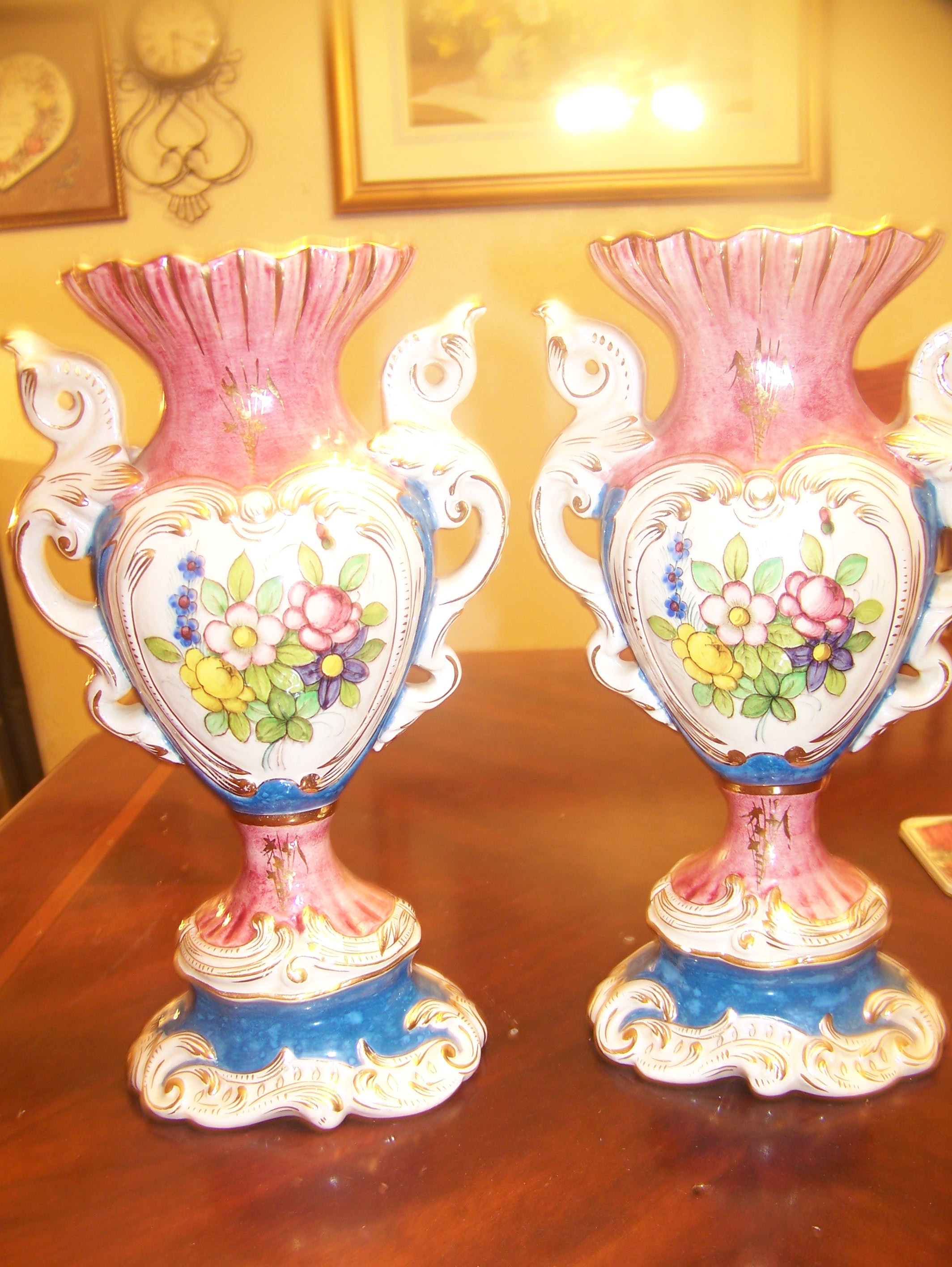 I HAVE MATCHING VASE'S THAT MY SISTER BOUGHT AT AN AUCTION IN INDIAN IN 2010. ON THE BOTTOM IS PRINTED 1498/400 ITALY. THEY BOTH ARE IN VERY GOOD CONDITION, VERY BEAUTIFUL VASE'S. I WOULD LIKE TO KNOW IF SOMEONE COULD TELL ME MORE ABOUT THE VASE'S. I WELCOME ALL FEEDBACK. THANK YOU