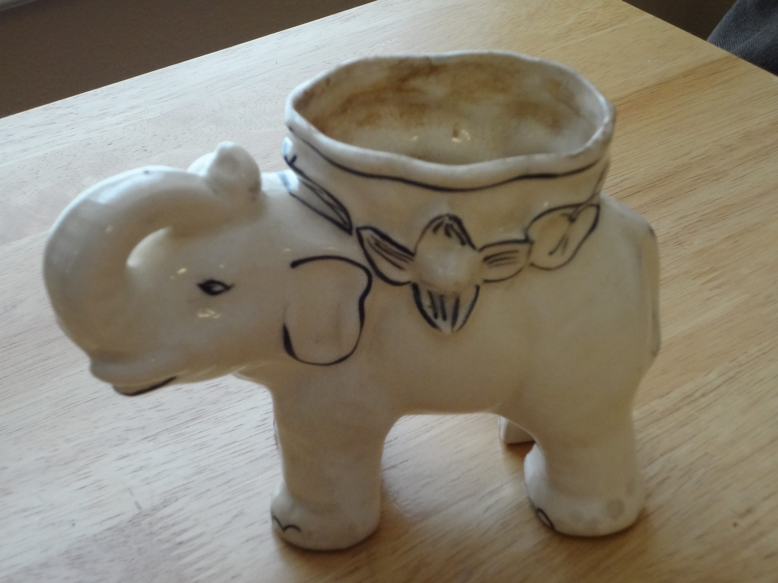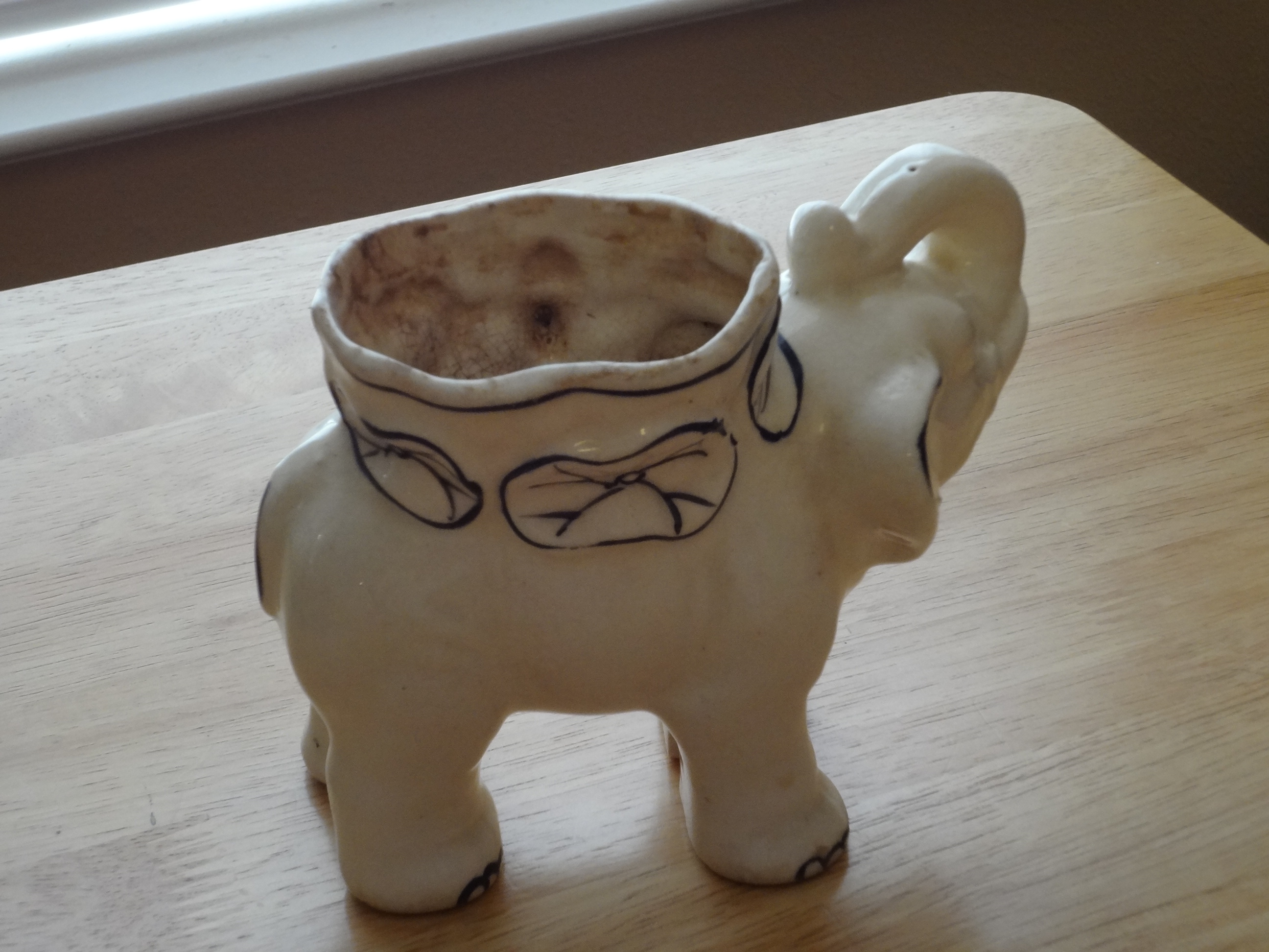 This is an elephant planter appears to be ceramic and says JAPAn on the bottom.