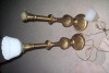 Do not know much about these lamps except that they were found in a storage locker auction I won recently. The bases appear to be made of pottery/ceramic. Bases are 17 1/2 inches tall (not including fixture) and width of base is 7 1/2 inches. Total height including the fixture is 27 1/2 inches. I could not find anything like them searching online. Trying to get an approximate year range of manufacturer, manufacturer, possible value or anything else someone might be able to tell me about them. There are no markings on either that I see. Both work and cords appear old. Neither have shades.