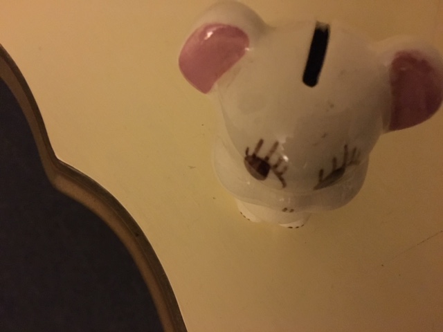 This ceramic coin bank appears to be hand painted. It has no stopper/plug and no markings regarding company, artist, origin, or year of manufacture. It has some crazing from age but no cracks or chips. Does anyone have an idea about the value of this item?