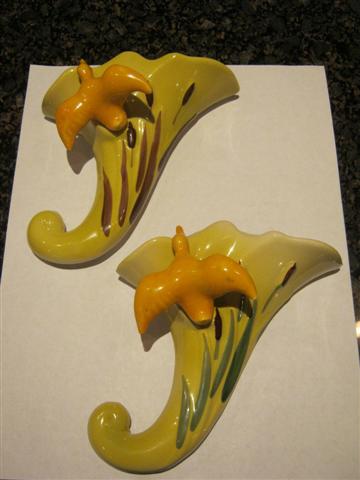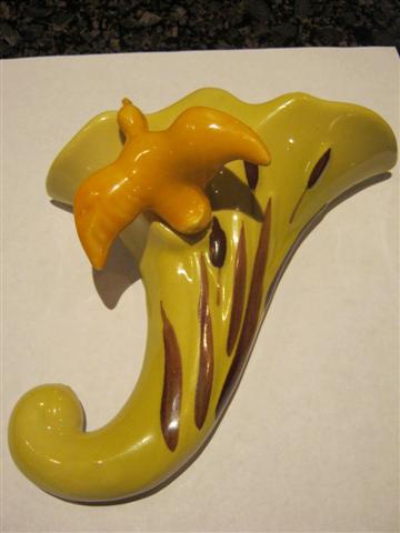 Hello, Here is some information for you: This wall pocket was made by the Ohio Porcelain Company in Zanesville Ohio. They purchased the design from Clifford Potts in March 1948.
