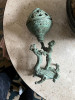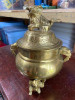 I think rather than being a stand alone incense burner, the chains would indicate this is a censor or, more likely, given its weight, an incense burner or candle holder from a temple. First impressions lead one to believe it could be Chinese, with the presence of phoenix and dragon, but looking again you can clearly see rats climbing towards the shape of a temple. There is a famous temple in India overrun by about 20,000 rats where worshippers believe the rats are an incarnation of goddess Karni Mata. Maybe it has associations with that temple, or was sold from a nearby market?