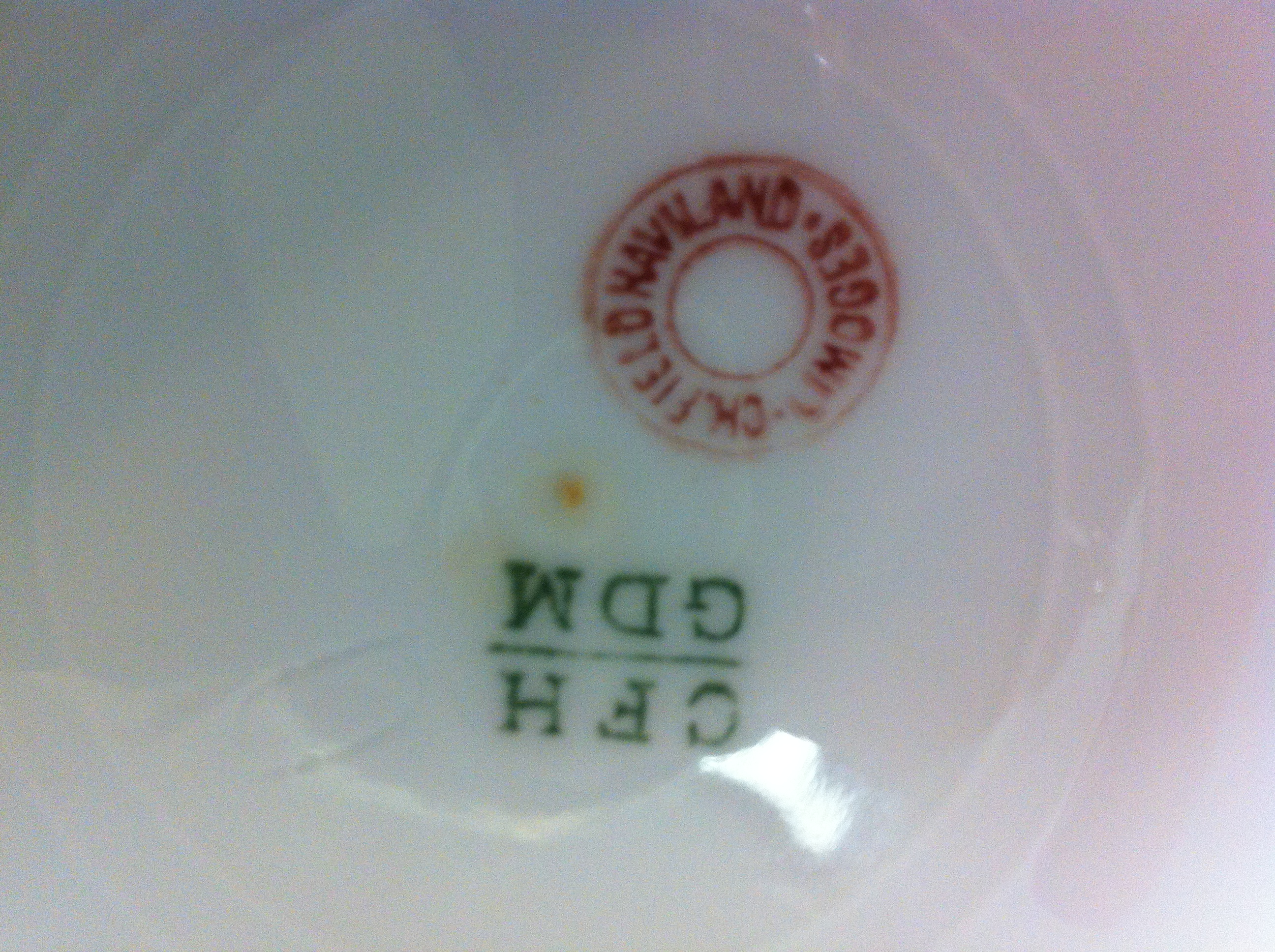 The back of the plate says it is a Charles Field Haviland Limoge plate with the CFH/GDM. However, I am unable to find this design anywhere on line. I was wondering if there was a date this particular pattern was made and who the artist was and perhaps a value if possible. Thank you.