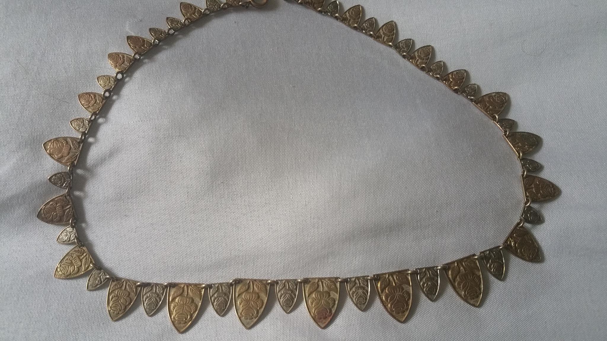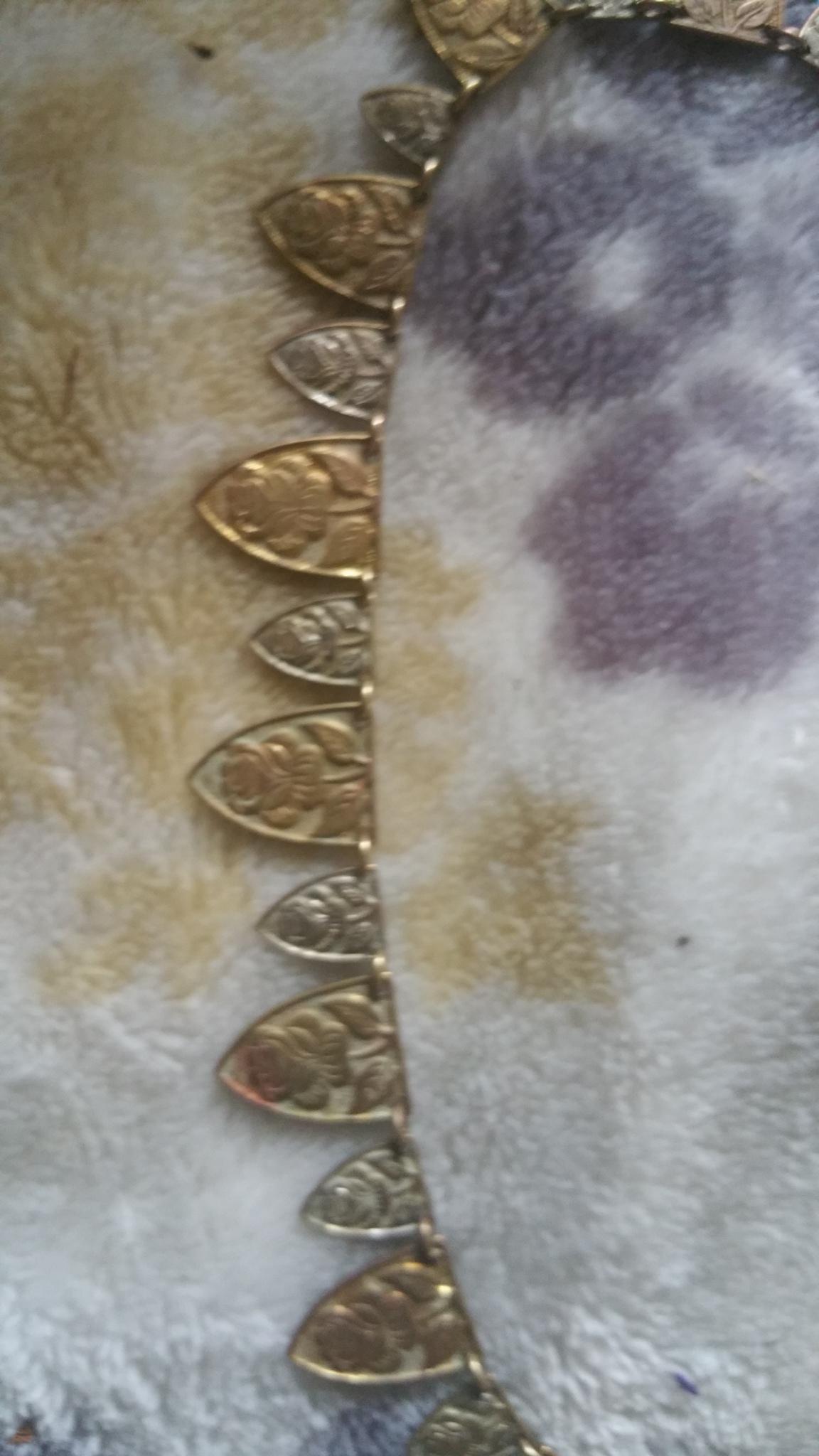 I have a gold bronze silver tone all metal Chian with roses engraved on triangle shaped charms the only writing on it is Czechoslovakia I'd like to know it's value and some info on it