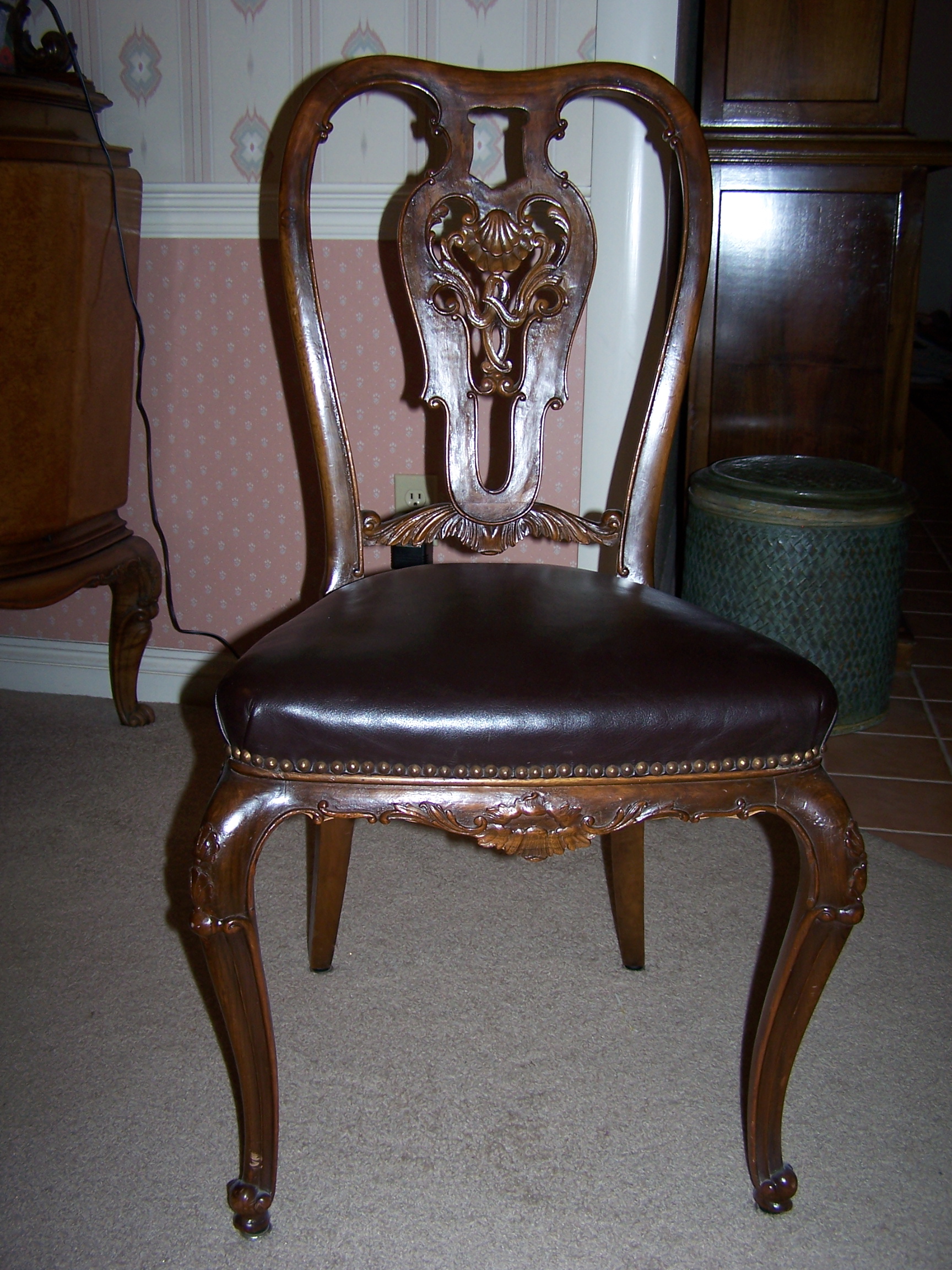 It is a short chair with an embroided seat. All is original and to my knowledge has never been refinished.