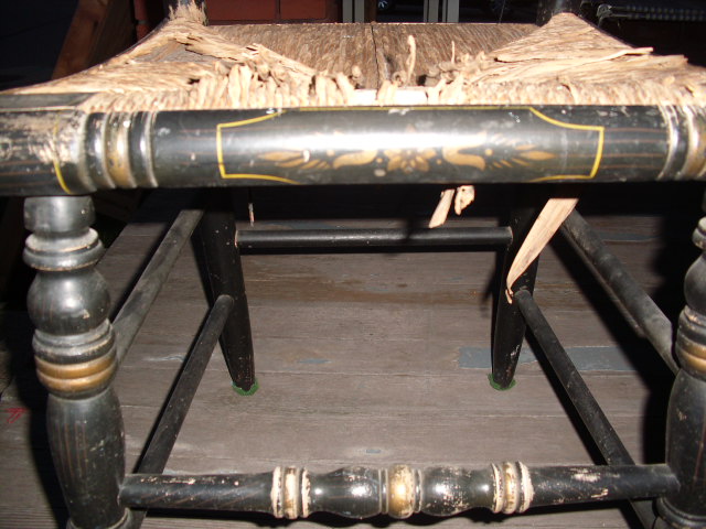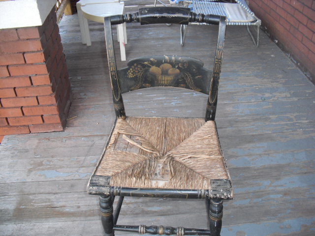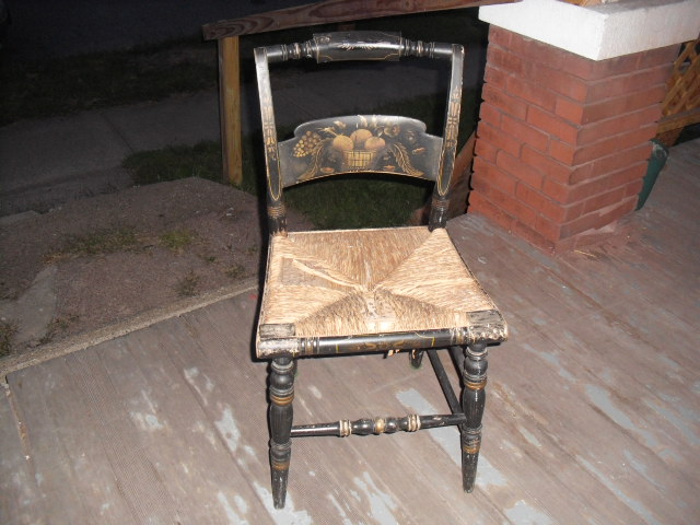 Your chair is a 20th century reproduction, the backward N's were never used on the chairs marked : "L. Hitchcock. Hitchcocksville Conn. Warranted". Most of the reproductions at auction sell for under $35.00.
