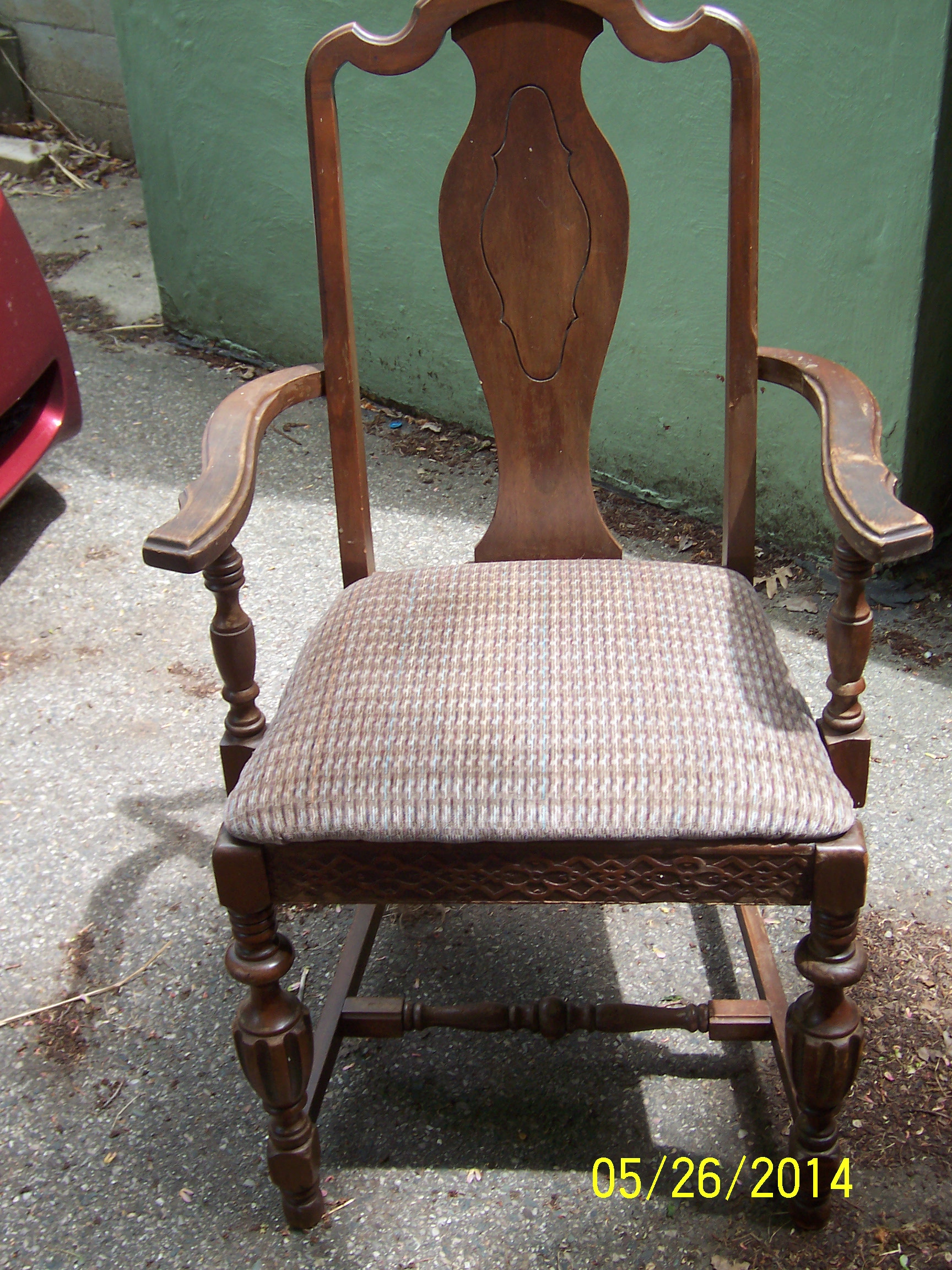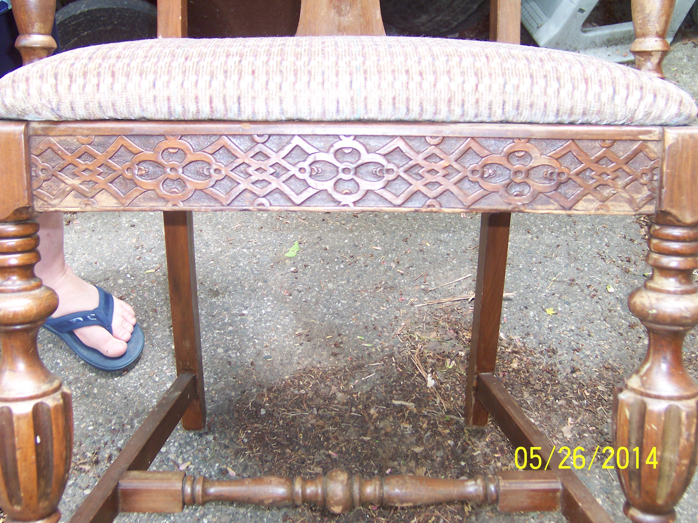 Attached are detail pictures of a dining room chair that was water damaged from storage. The chair is still structurally sound and is in good condition except for finish. We are looking for appraisal of actual value before damage for insurance coverage.