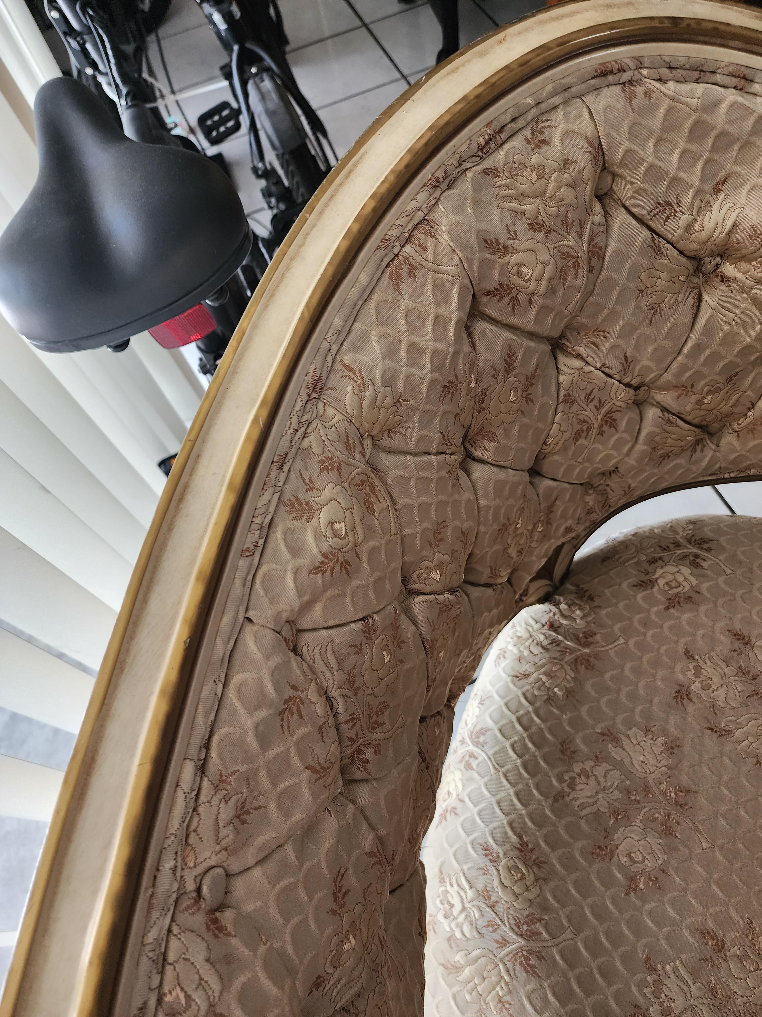 Found two old chairs and took them from garbage. No marks, no manufacturer's name. Chairs are very sturdy, wooden, inside is a hay or something like that. Would like to know how old these chairs are and if they worth anything, please help.