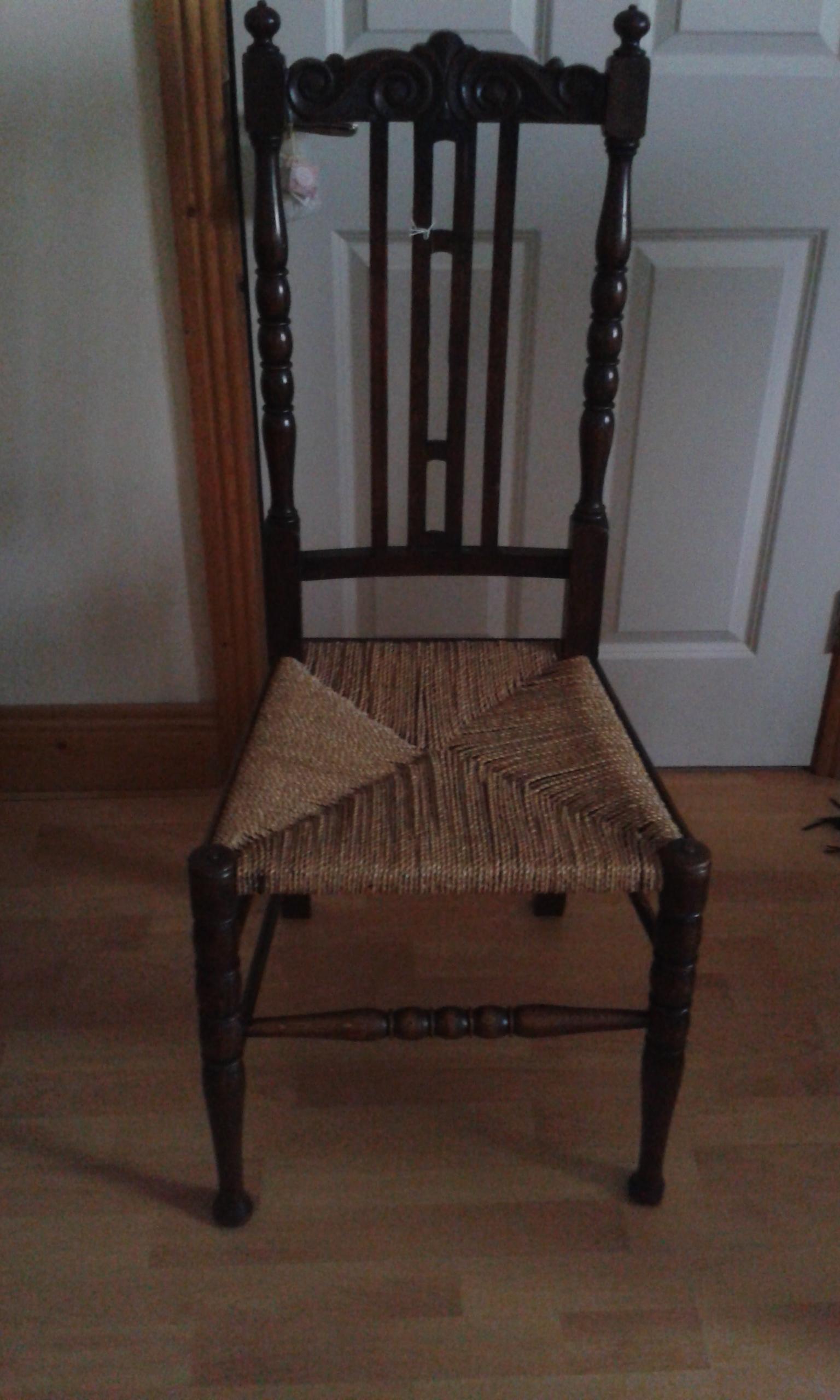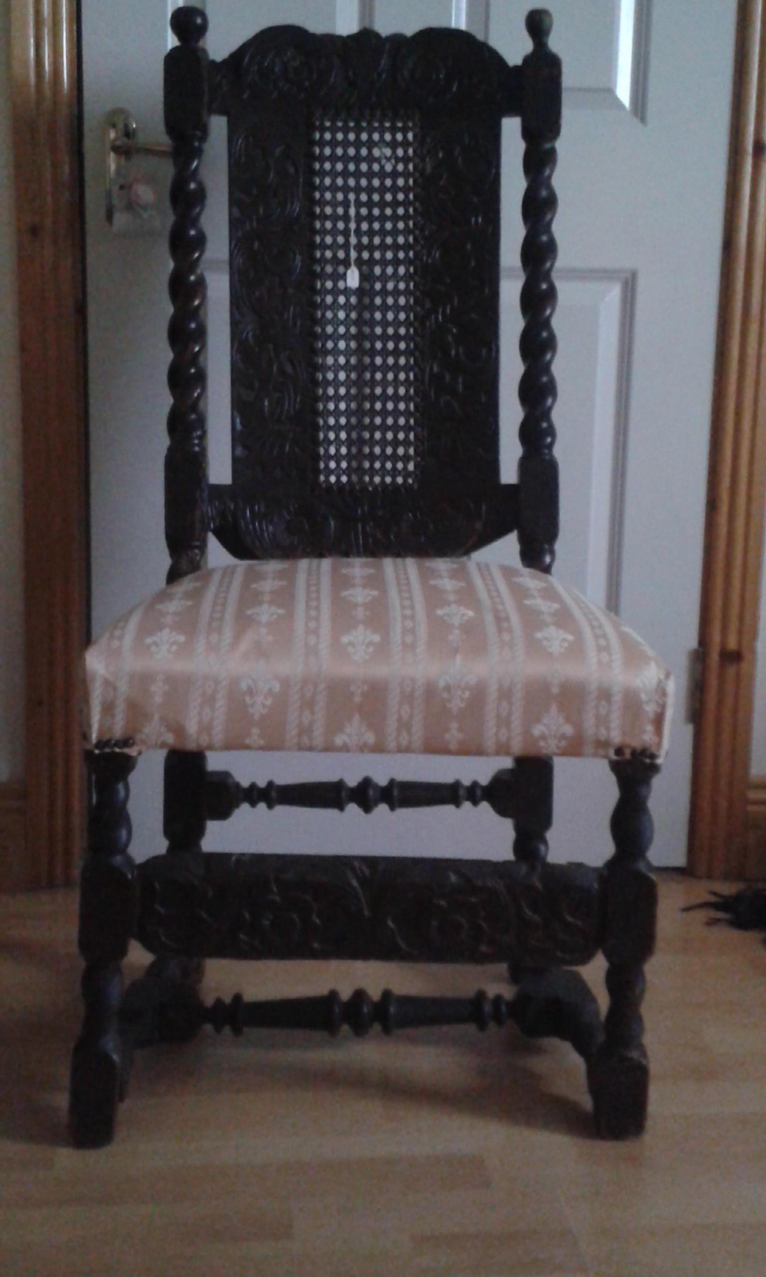 larger chair has cane back, looks hand carved also