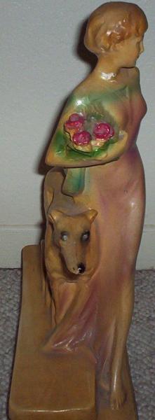 This piece was given to me by my grandfather, along with other misc items he wanted to give out. He told me that it was a gift during the first year he and my grandmother were married. It appears at one time my grandmother may have broken the neck of the woman or cracked and repaired it because there is a crack line/chip along the woman's neck. I listed the item as FAIR because if this chip/crack/repair. I cannot find any marks on the item - the bottom has been covered in green felt - not sure if my grandmother did this or if it came this way. I haven't attempted to remove the felt. Other than that, I don't know anything else about this piece. Any info about this piece would be helpful.