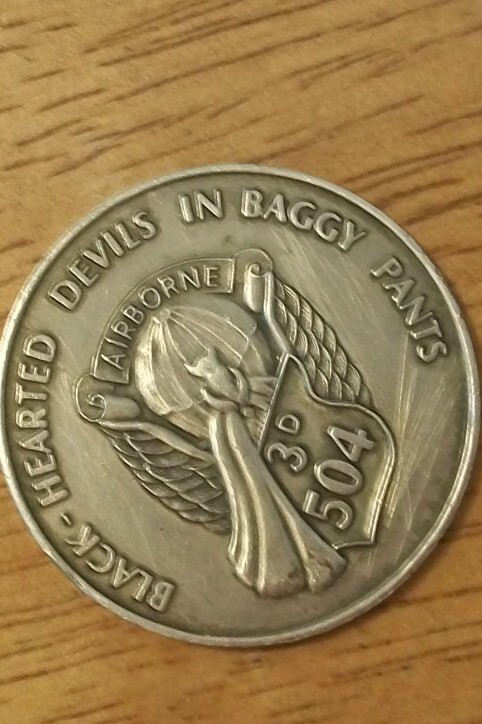 partroopers were the frist trained to jump from air craft in Frot Bragg N.C they also jumped at night World War 1&2 airborne 3rd 504 strike hold they fought in Central Europe, Sicily to name a few my husband found it in home that he worked on he is a carpenter we have had it for 11 years and have no idea about the coin or it,s value if any would like to know about the coin itself .....THANK YOU in ADVANCE