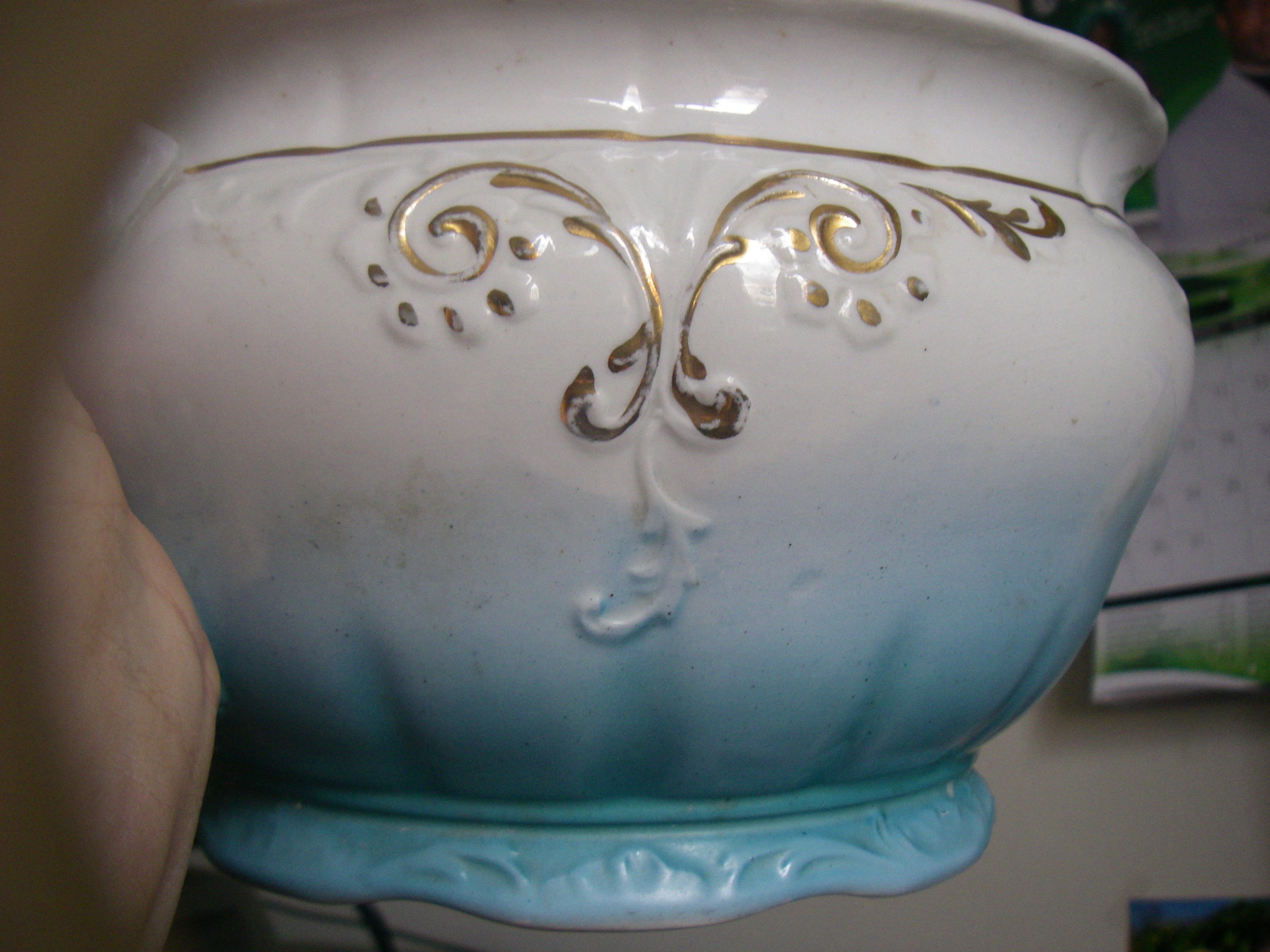 teal is dark on bottom and gets lighter as goes up pot