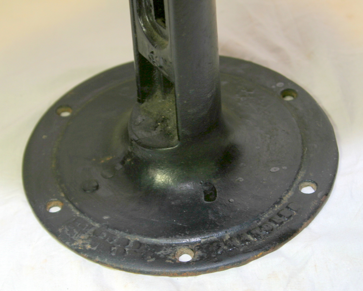 This a small childs desk chair from around 1890's made by Chandler cast iron of Worcester, Mass. The height is approx. 21" high the seat made of wood is 12" across. The seat back brace is in the design of a butterfly. I read something about this and can't remember where. It has patent dates and Chandler on the base. The patent dates are not completely readable from little feet rubbing on it for over 100 years. There are two top says Nat. Nov 8 '92, bottom says Pat. July 9 '88 I'm guessing at this.