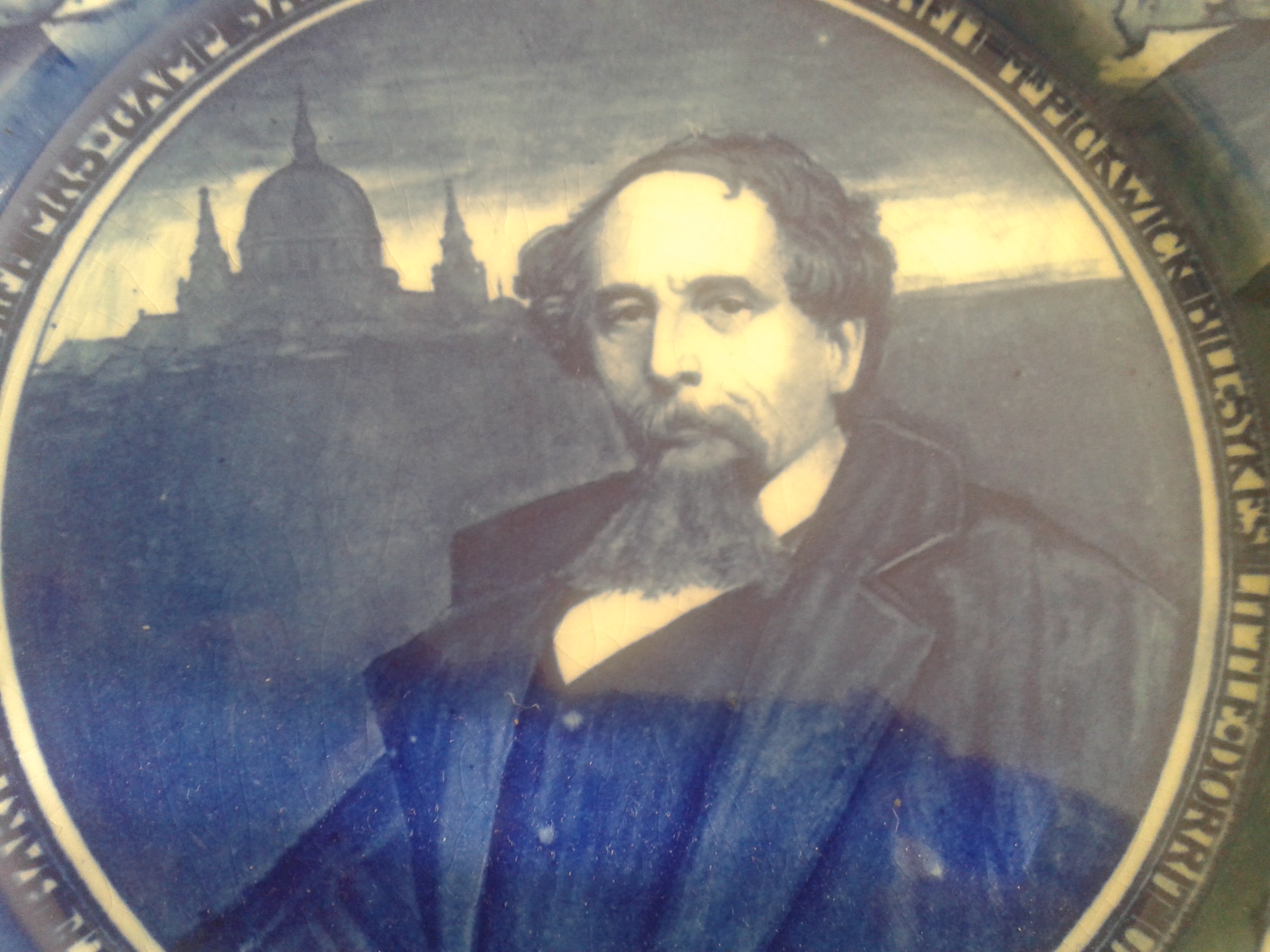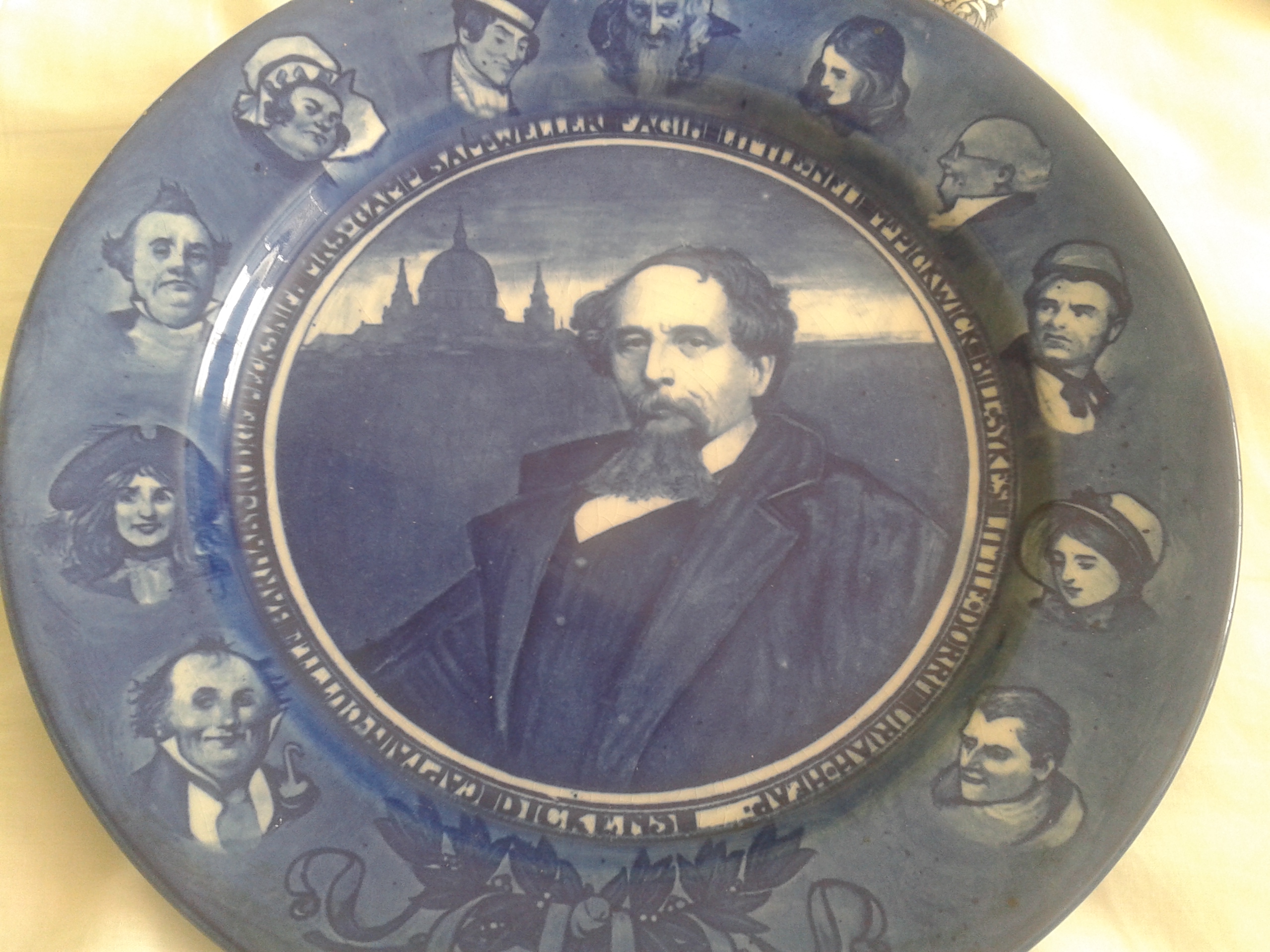 Very old Charles Dickens plate with book characters surrounding authors centre picture. Royal dalton, sticker on back of plate stating Royal Dalton, 1902-22. My mother was given this by her parents.