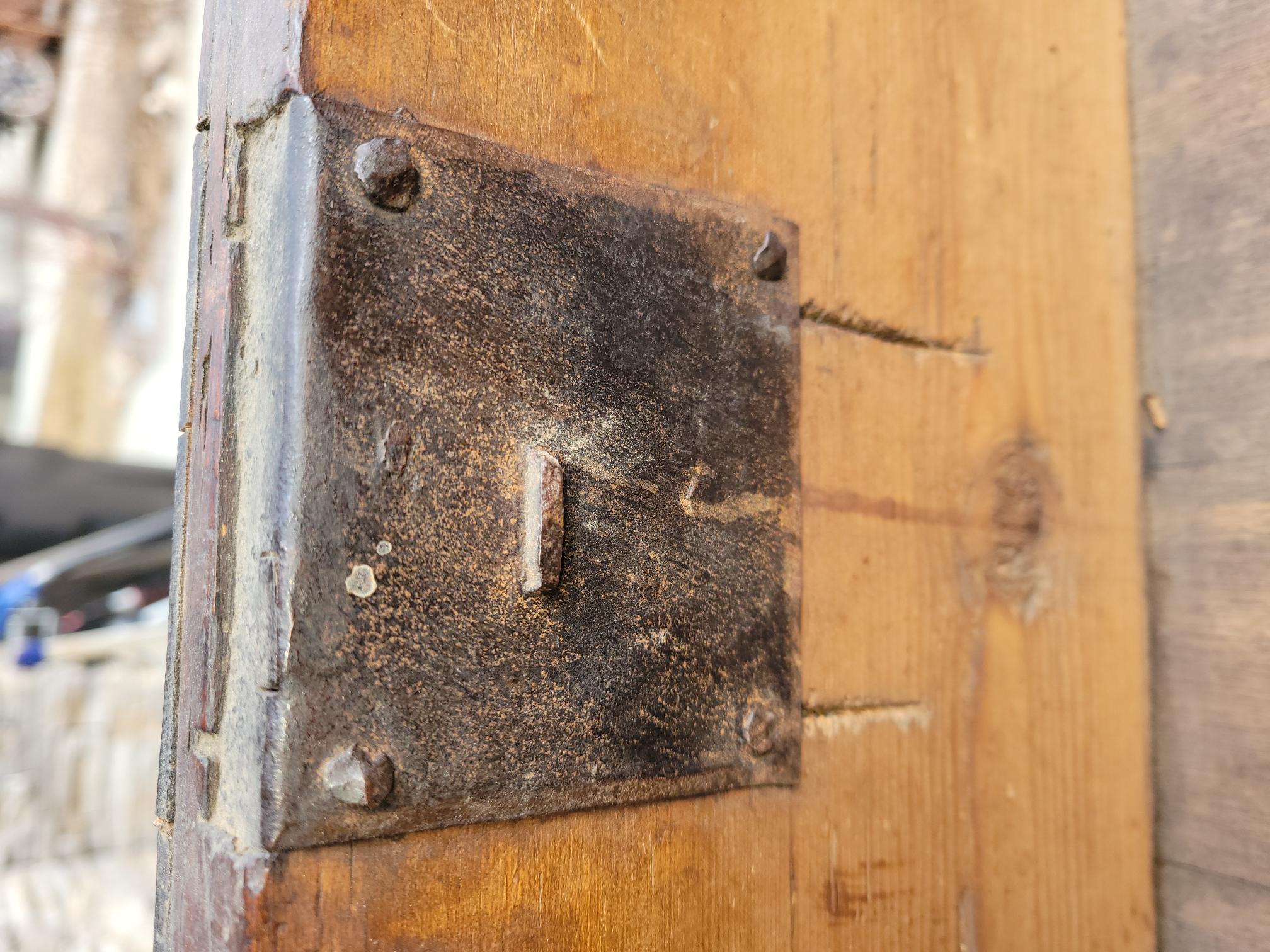 - most of the glue is failing, someone tried repairing it with pin nails at some point so there are modern pin nails in various locations