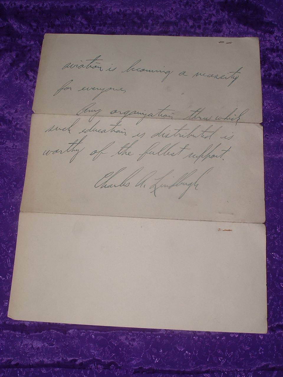 Re: charles lindbergh letter dated Nov 23, 1927 national...