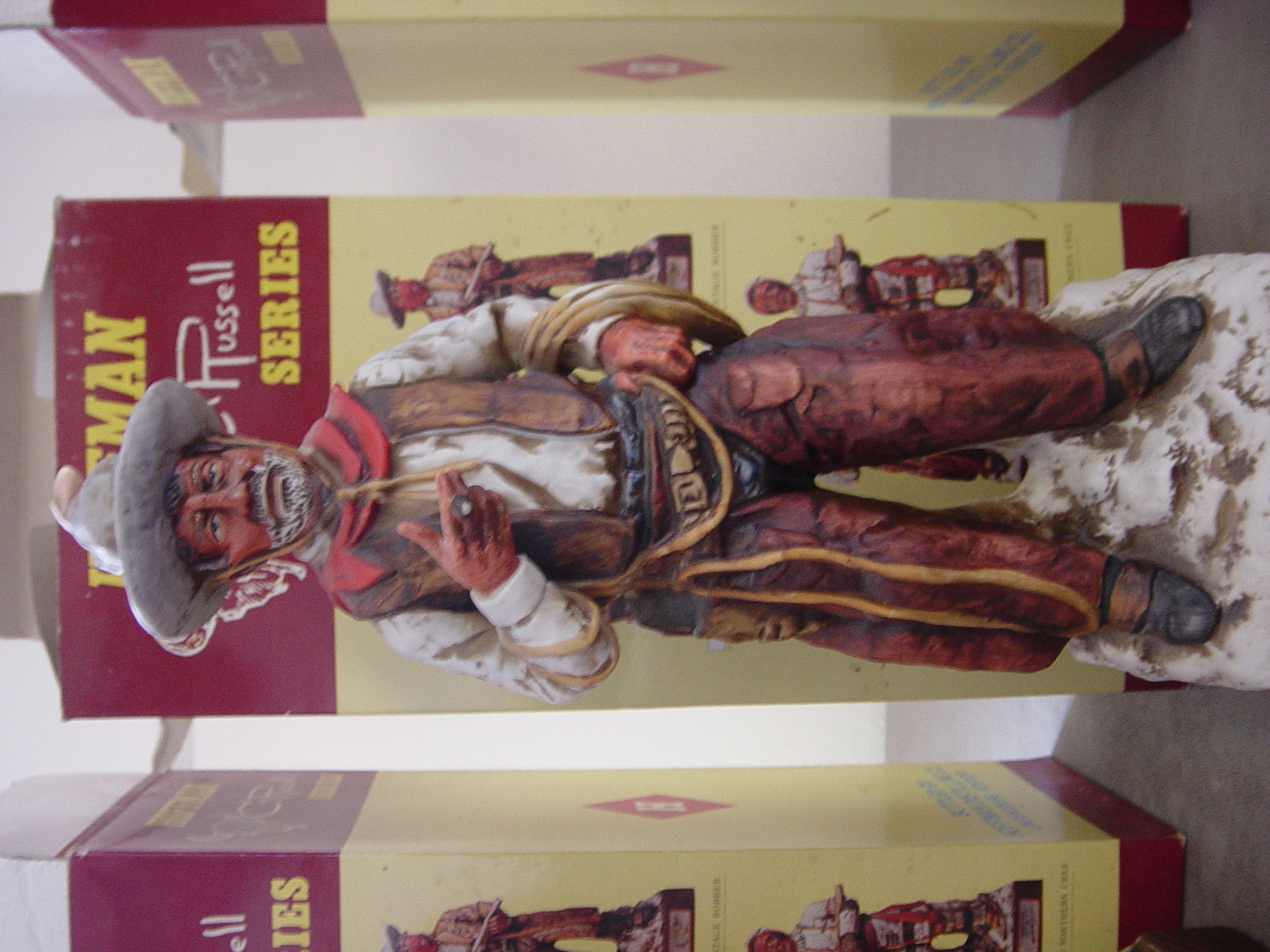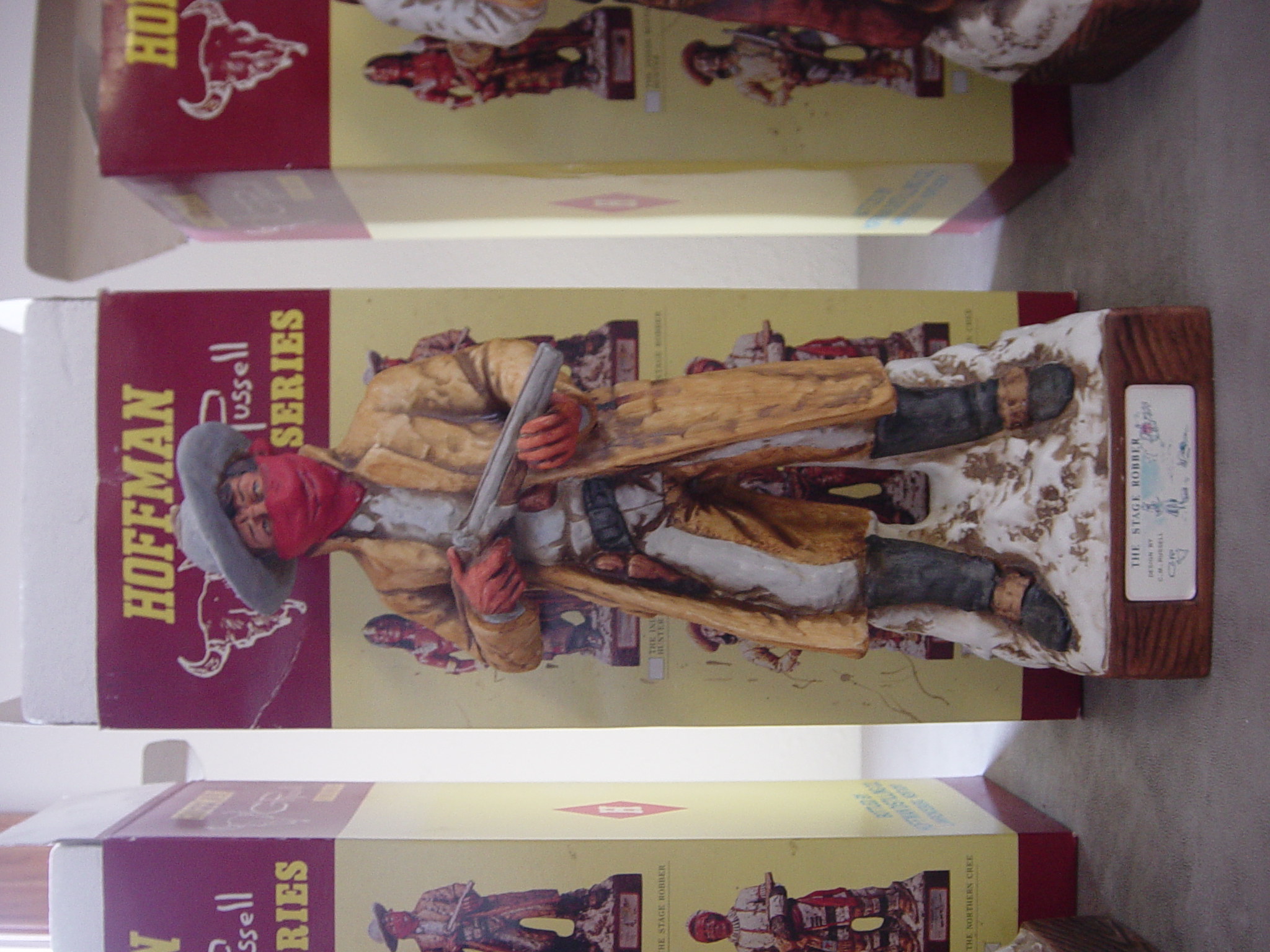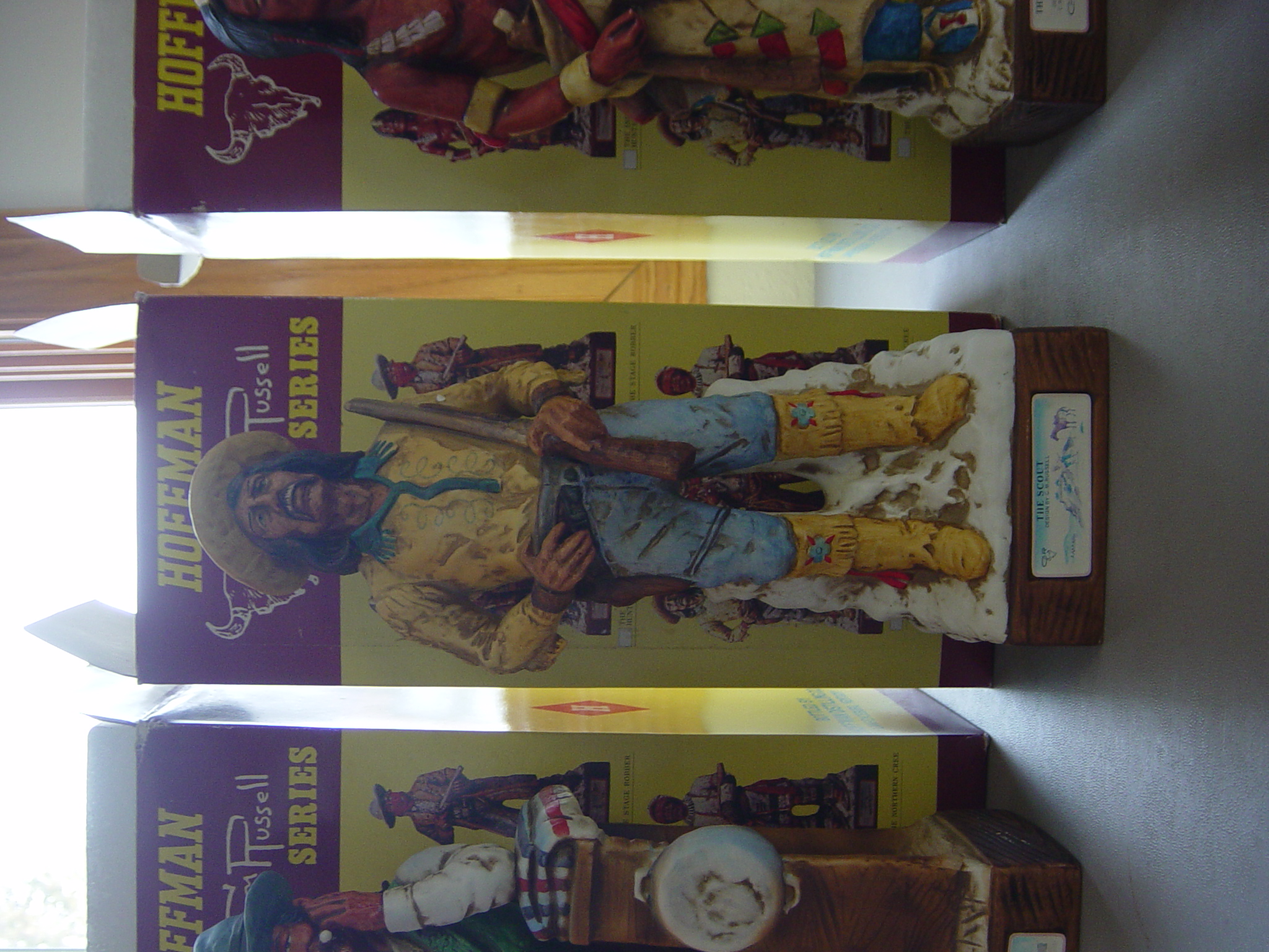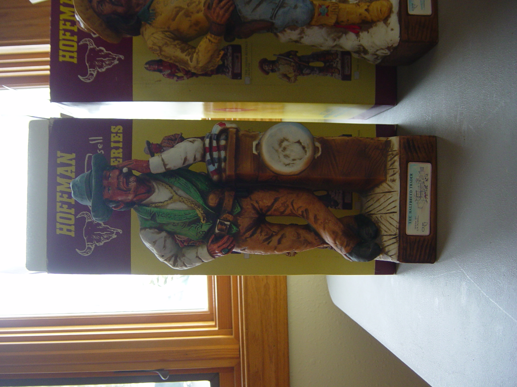 I have an original Charlie Russell Hoffman Series. This series consists of six different liquor bottles each with their own unique design. There is The Indian Buffalo Hunter, The Halfbreed Trader, The Stage Robber, The Scout, The Cowboy, and The Northern Cree. I have each one of these bottles. None of them have ever been opened and they are still in their original boxes. Each bottle still has it's tax paid seal in tact on the bottle. The date on the bottles is 1977. If you can use any more information just let me know.