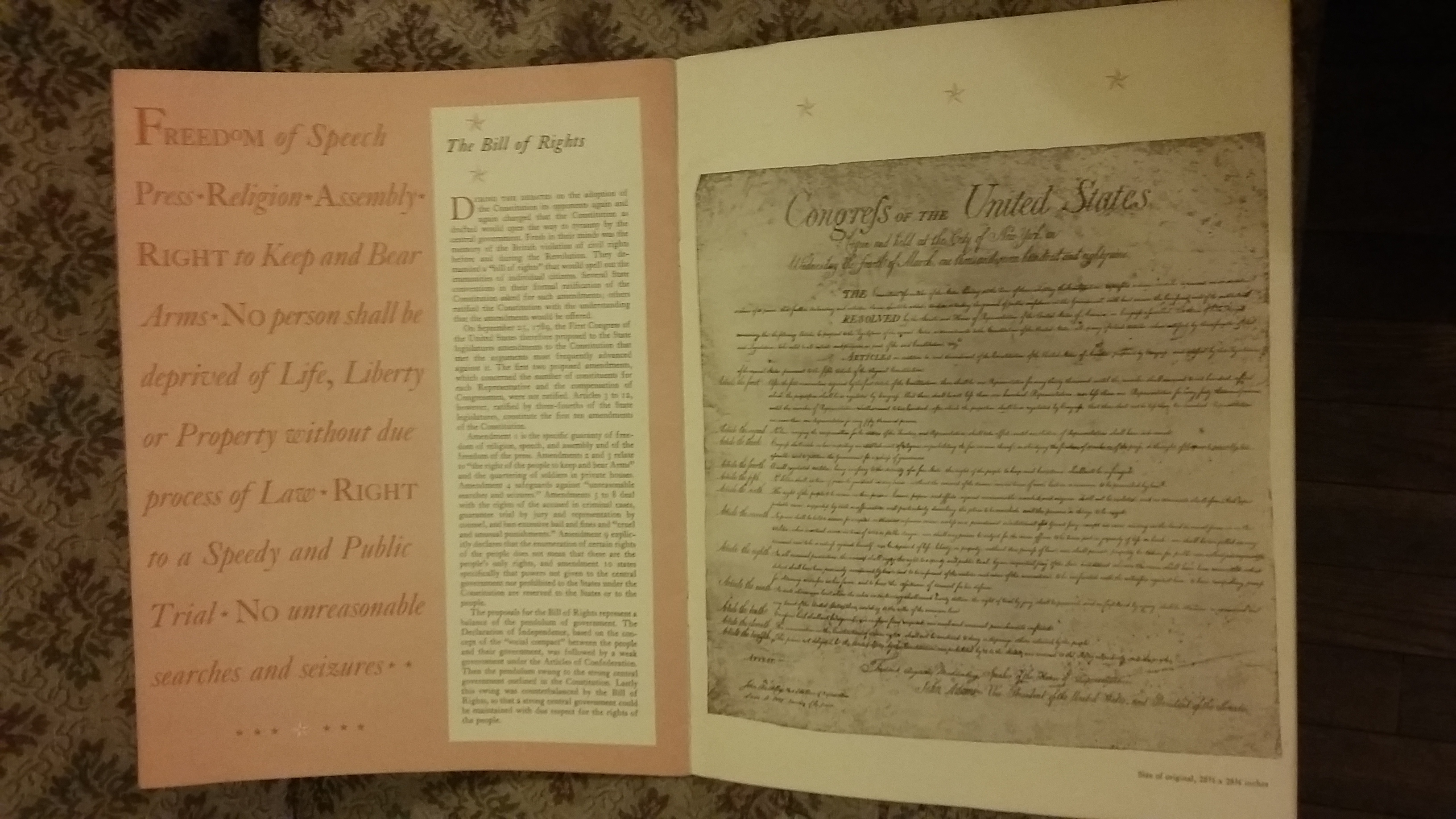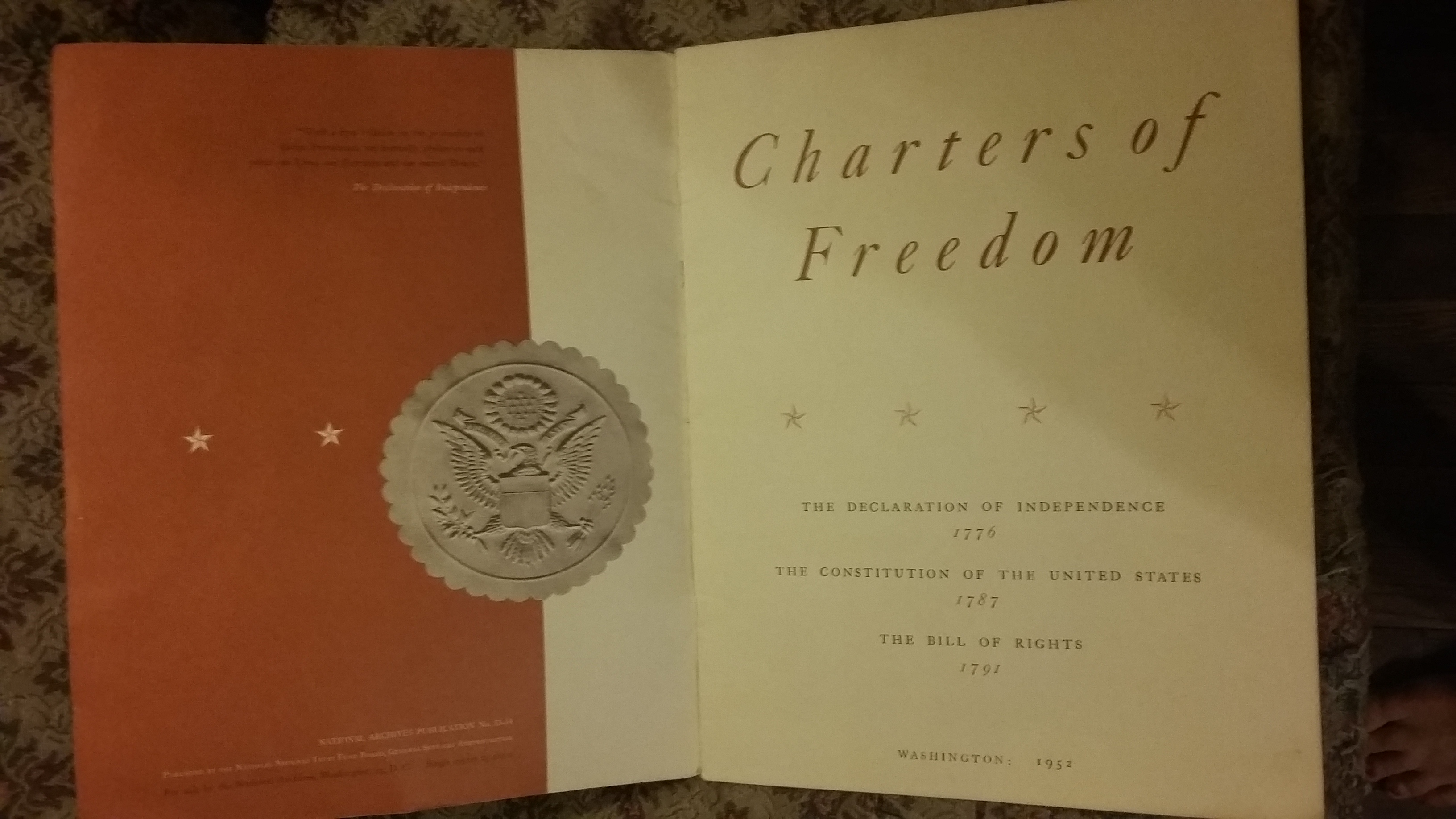 Booklet with a copy of in congress July 4, 1776 a declaration by the representatives of the united states of America in general congress assembled