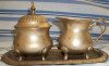 Hammered Pewter creamer and sugar bowl,darker in color, markings as stated above, numbered on bottom # 02501.