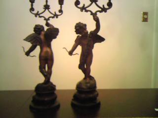 I have had these for a few years. They came from a Charleston, SC estate. I can not find any marks or signatures on them. Each weights 8.6 lbs and is in excellent shape. I believe they are made of a bronze metal. Any information you can provide on these is greatly appreciated.