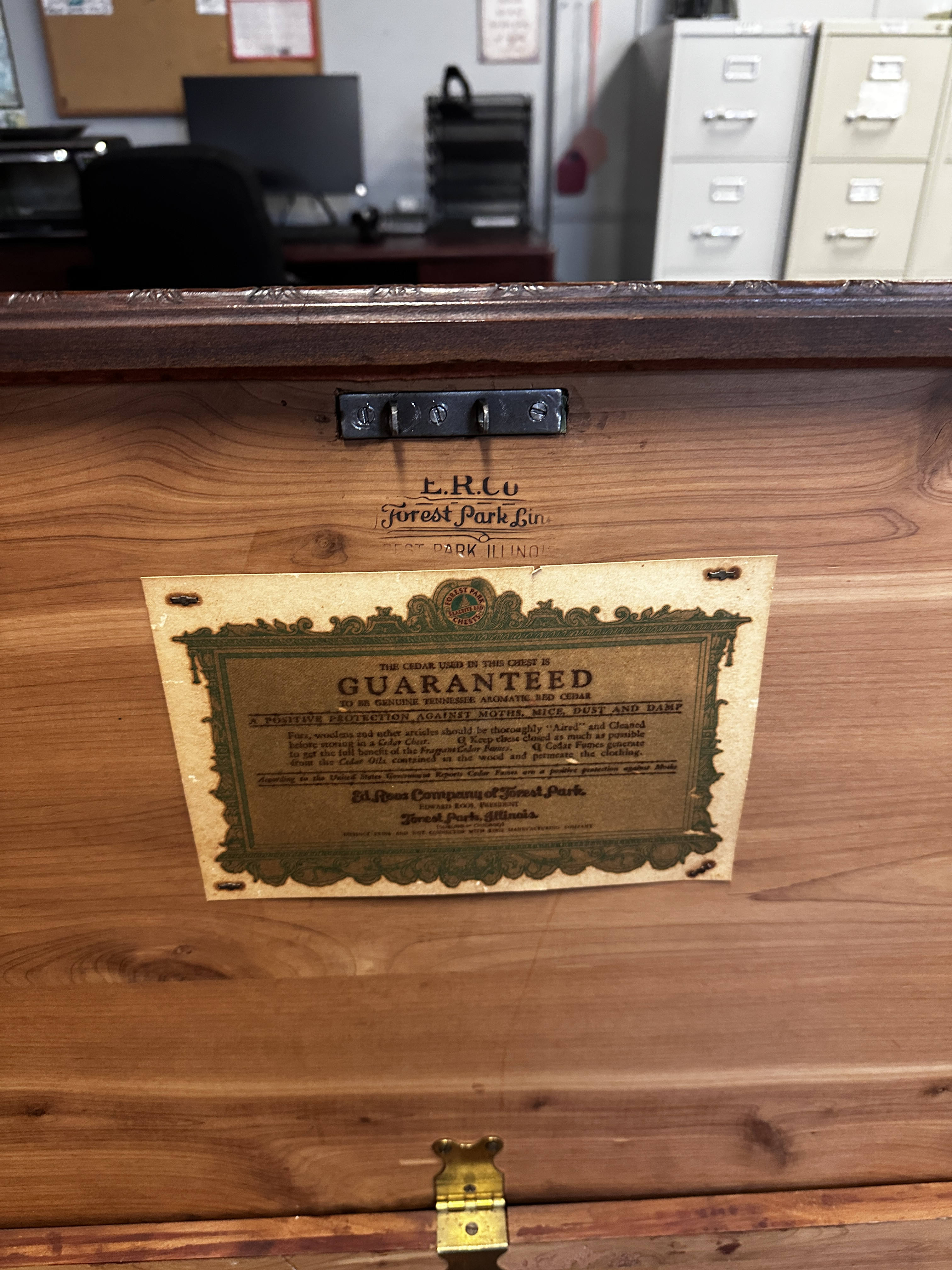 Antique Cedar Chest by Ed Roos Company of Forest Park, Illinois