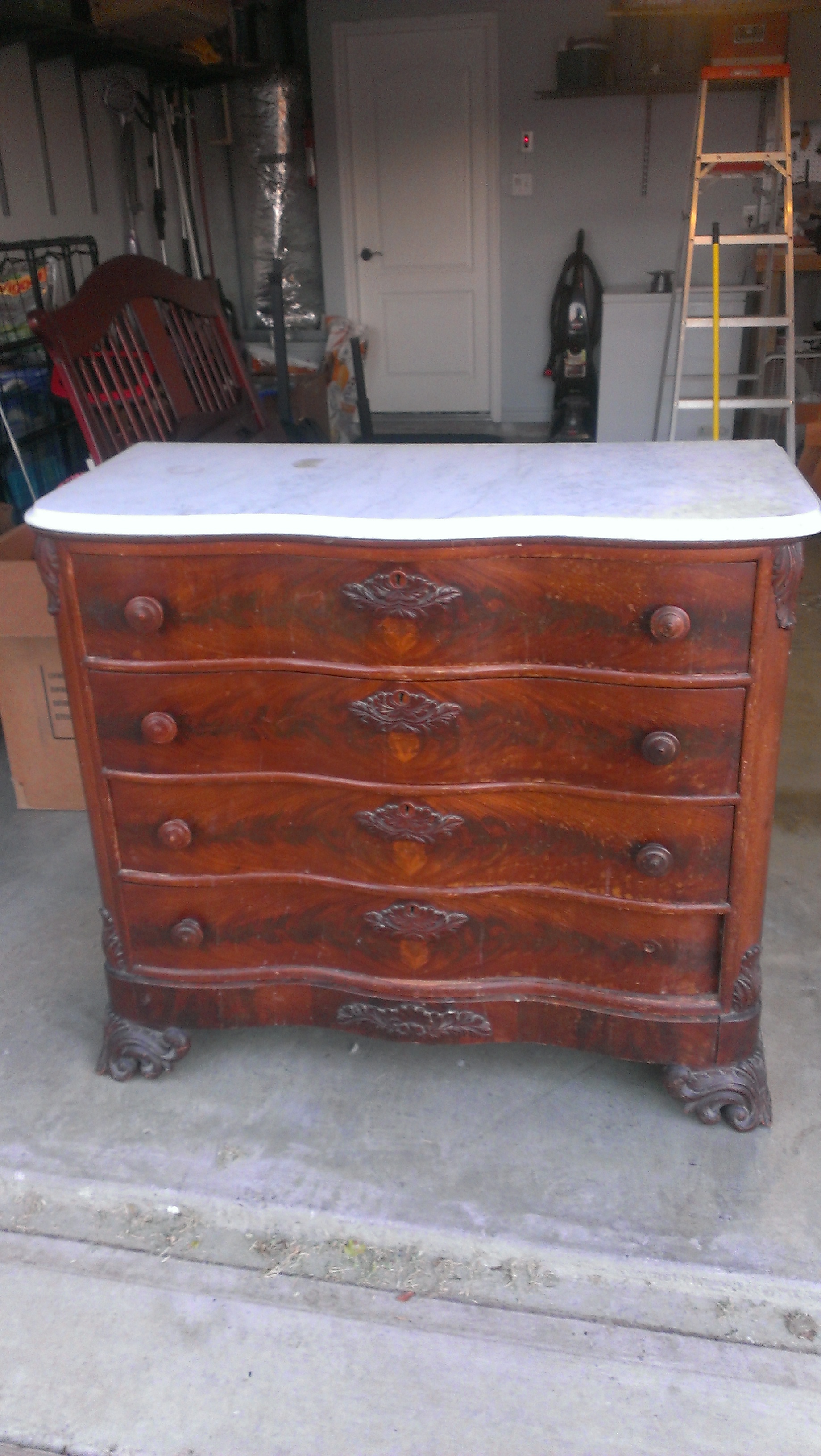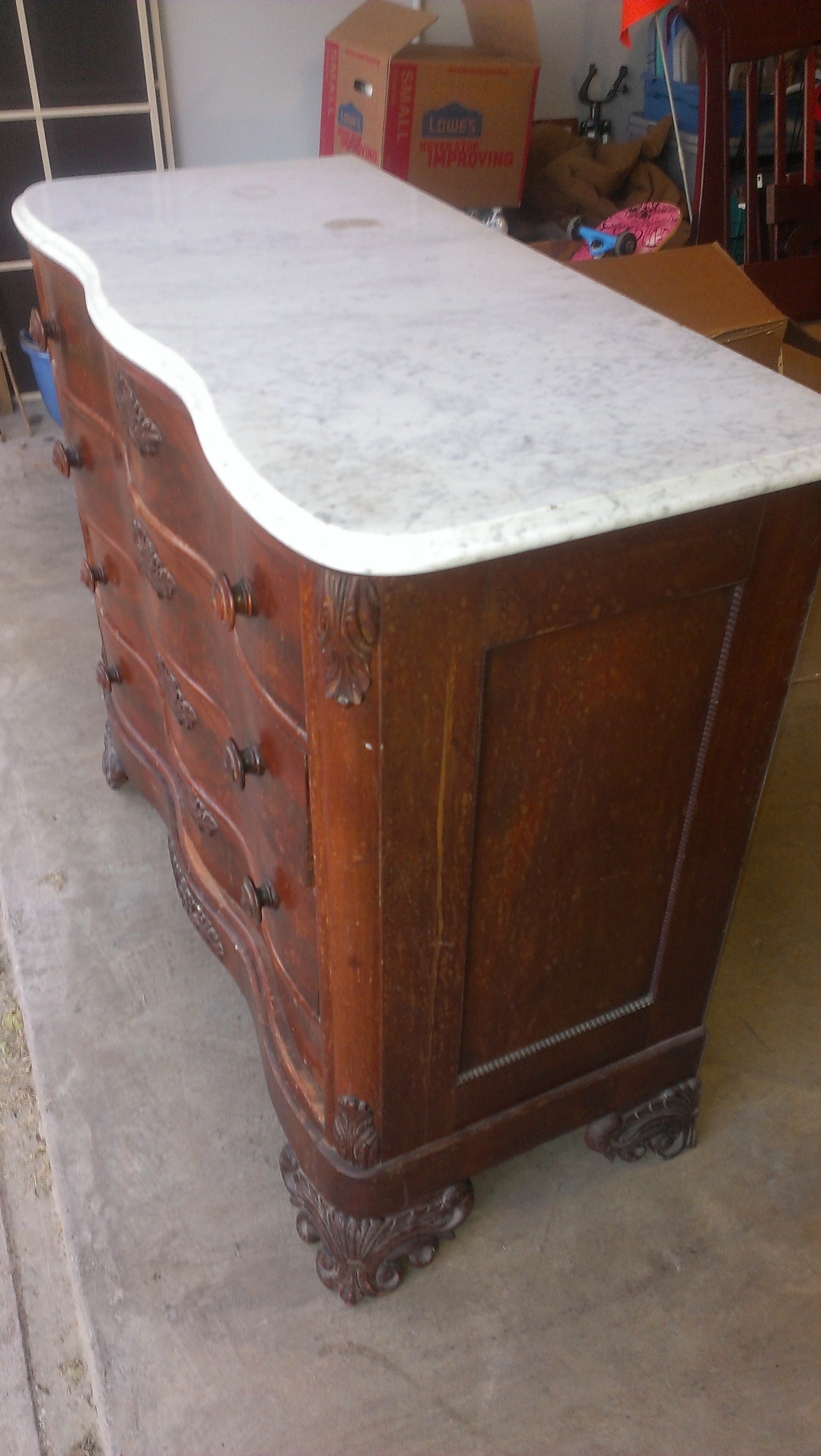 Distinguishing marks Marble Top, Hand Cut Dovetails, Claw feet