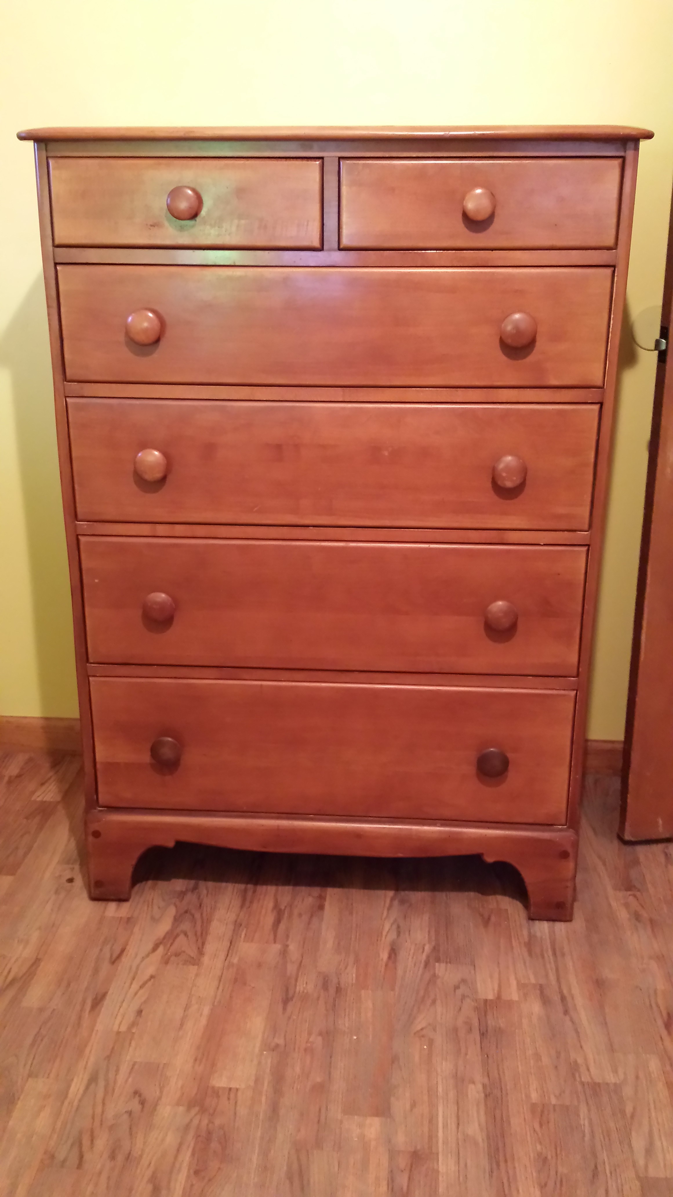 This is a typical 1950's to early 60's Colonial Revival style piece, a number of companies made pieces like this. In today's market a comparable dresser in very good condition would go at auction for about $100.00.